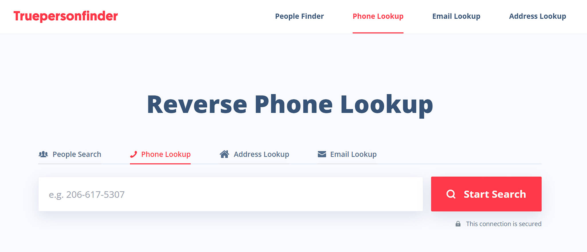 True Person Finder is yet another free reverse phone lookup service that makes it to this list. They have a simple but functional website that can help you look for the identity of an individual just by typing their name, number, address, or email.
