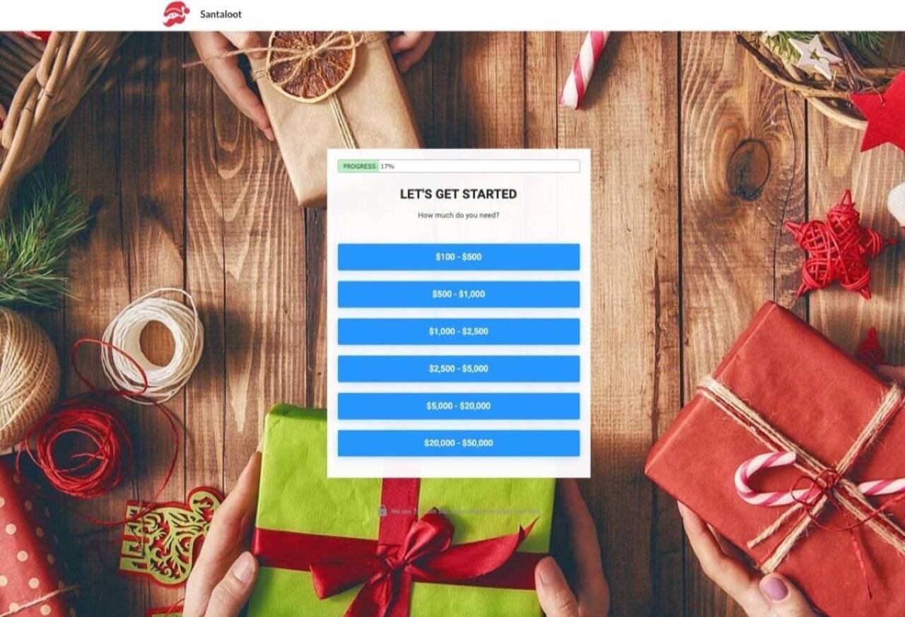 Santa Loot brings you the opportunity to borrow from $100 up to $50,000 this Christmas, with a highly competitive APR, loan terms of up to 60+ months, instant approval, same-day express disbursement, and the flexibility to use your credit as you wish for any type of holiday expenses.