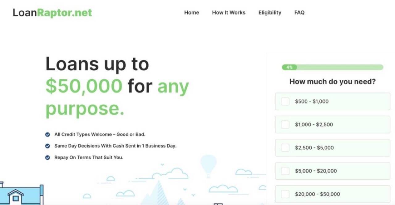 You can rely on Loan Raptor to borrow from $100 up to $5,000 and repay it in up to 48 months, bringing you the best of both worlds: generous loan amounts and flexible loan terms. And because they don’t perform credit checks, Loan Raptor is an excellent choice for Christmas loans for bad credit.