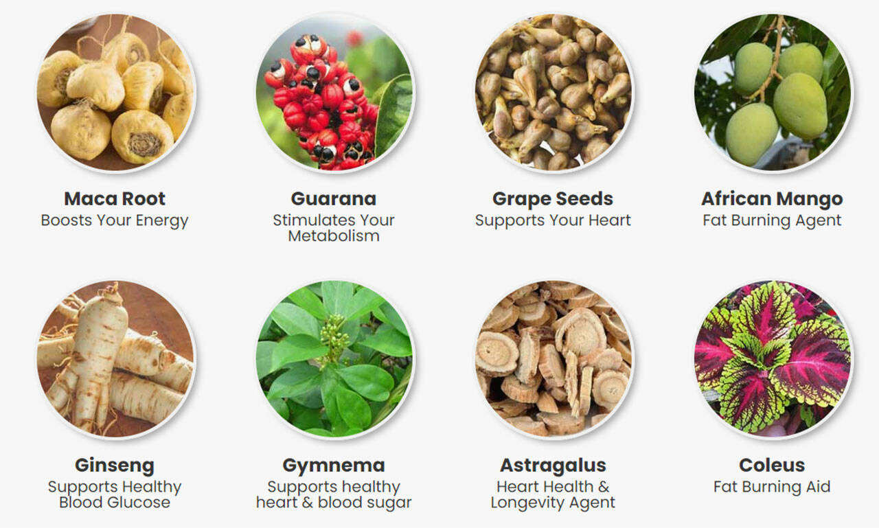 Key Ingredients: African Mango, Guarana, Astragalus, Maca Root, Coleus, Grape Seeds, Gymnema sylvestre, and Panax Ginseng