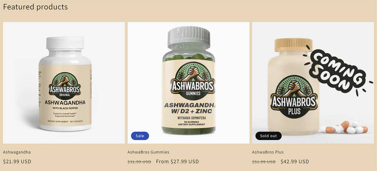 - Three bottles of AshwaBros Gummies at $72.99 + free US shipping;