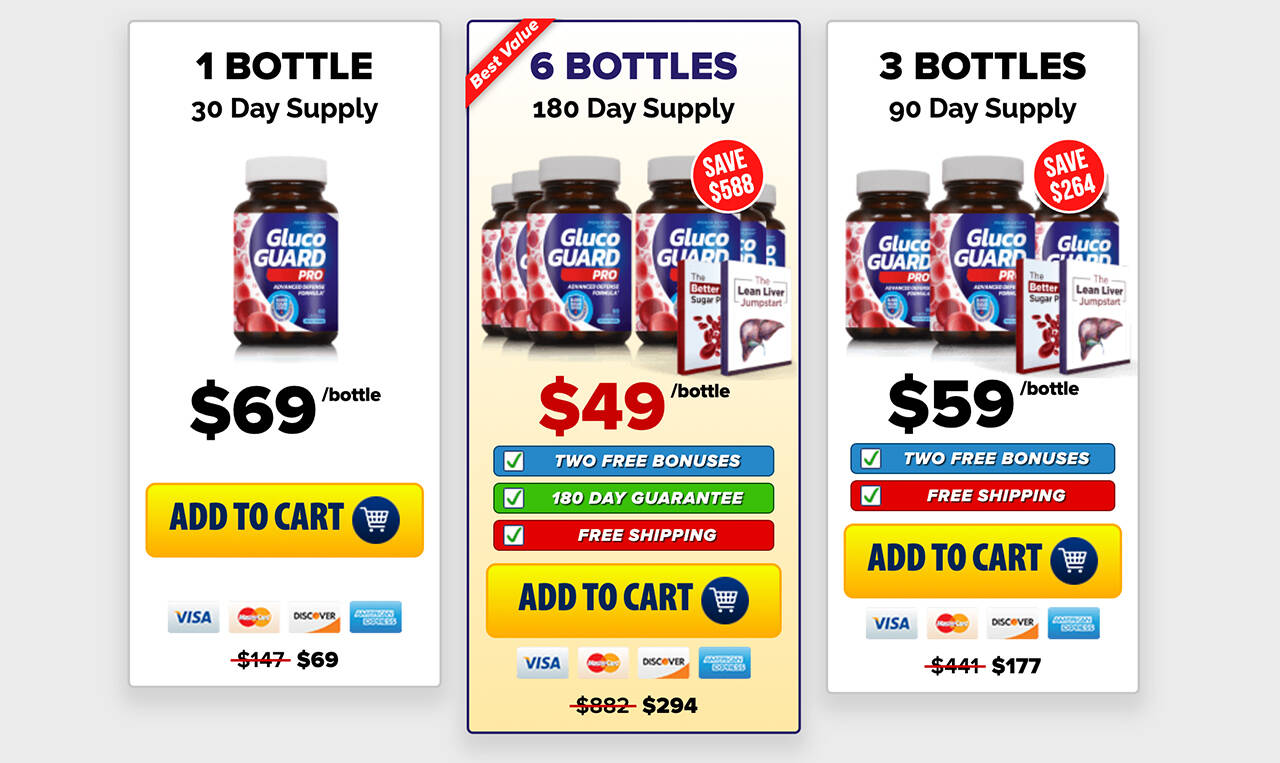 Triple Bottle: The triple bottle package, priced at $177, allows individuals to save on their purchase while ensuring a consistent supply of Gluco Guard Pro for continued support.