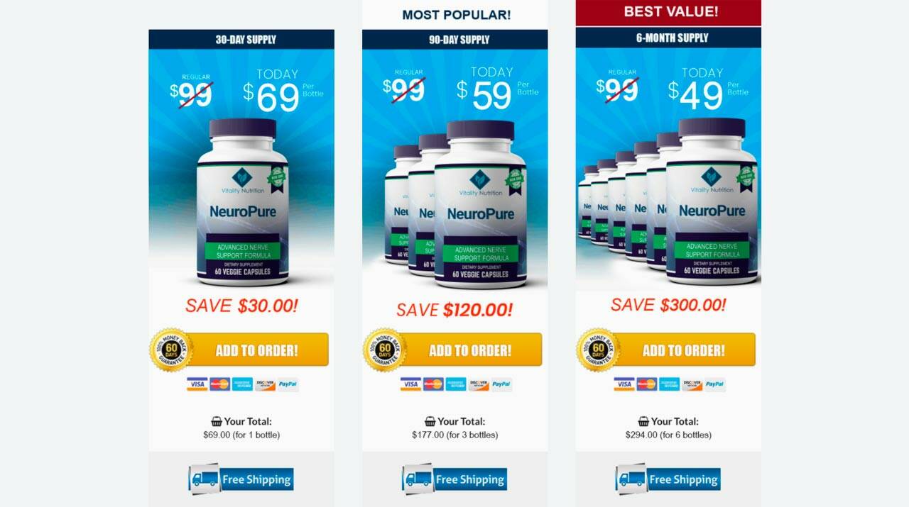 The manufacturer offers massive discounts and free worldwide shipping on all NeuroPure packages. The best NeuroPure prices on the official website are as follows: