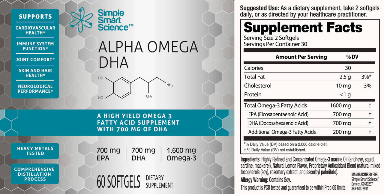 Simple Smart Science suggests taking two Alpha Omega DHA soft capsules per day. The supplement is not for children and those under any medication. Before incorporating Alpha Omega DHA into your routine, seek a medical opinion.