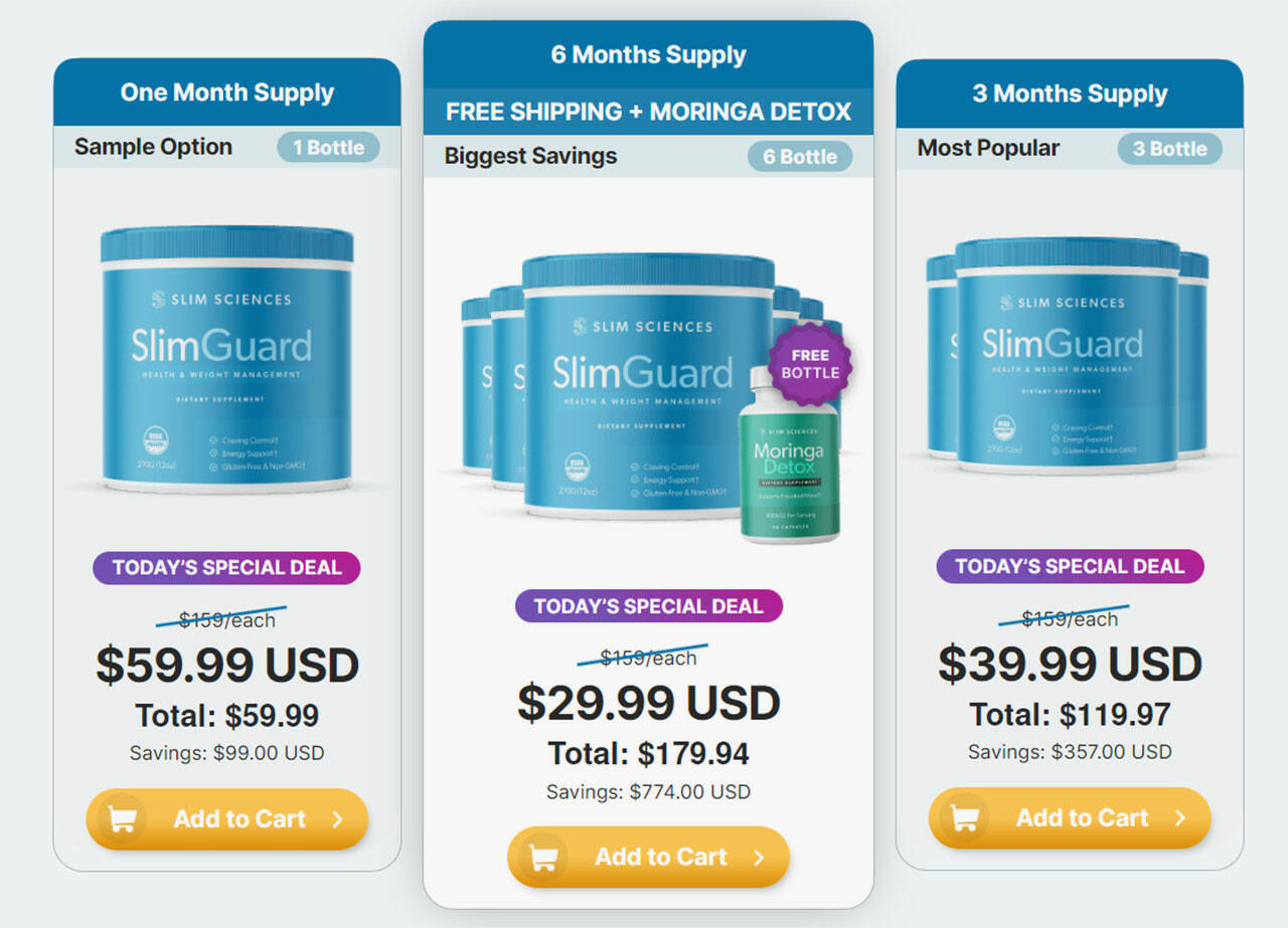 Customers can buy genuine Slim Guard supplements only via the official website. There are offers, discounts, and bonuses when you buy in bulk. Slim Sciences promises to deliver the product in 2-6 working days.