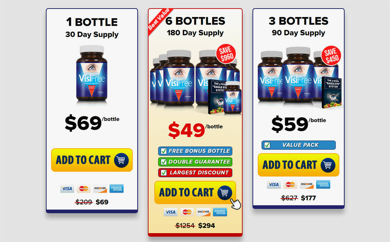 Consumers who want to see if VisiFree is a good option for their eye health can only make their purchase through the official website. The website offers a few different options, depending on how long the user wants to commit to using the vision supplement.