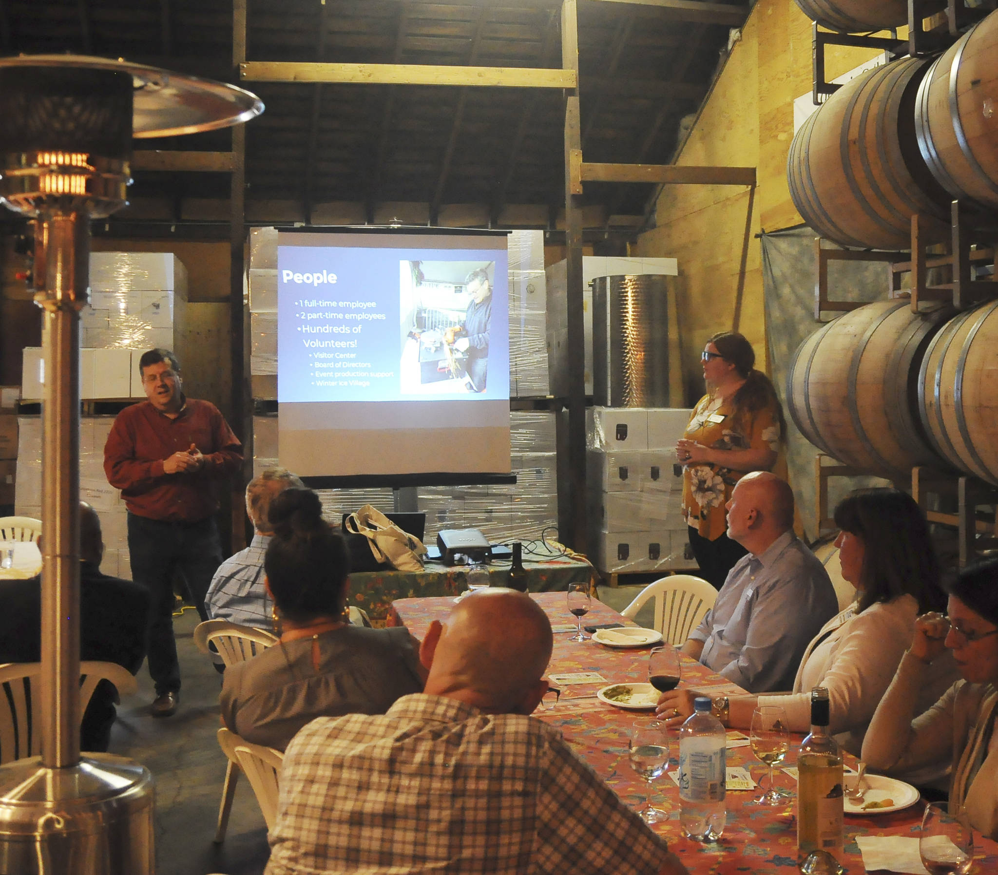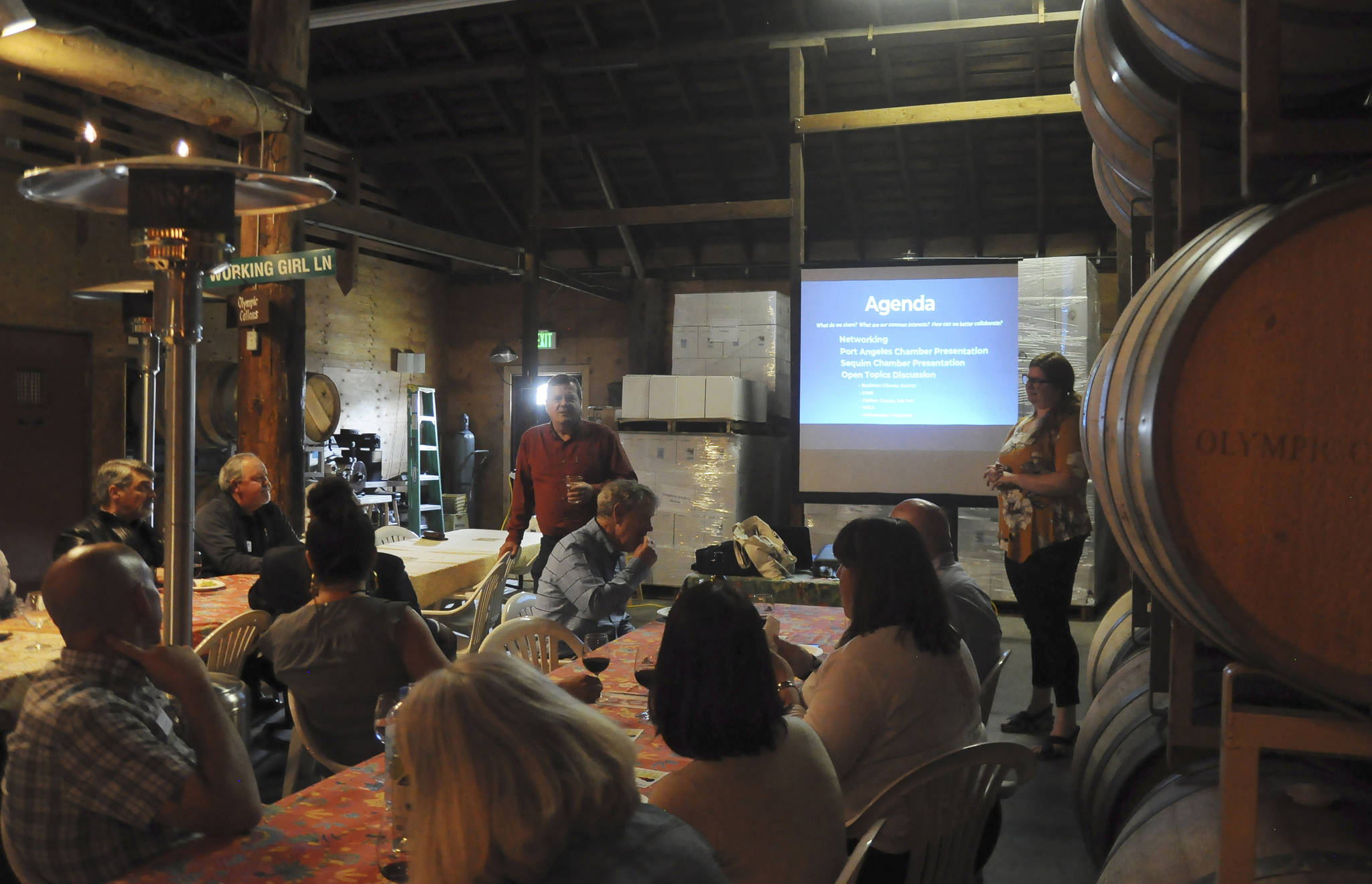 Abshire and Scalf helped lead a joint meeting between the Port Angeles and Sequim chambers of commerce Monday at Olympic Cellars Winery, with membership from both learning more about each other’s groups and talking about ways the entities can complement and learn from each other.