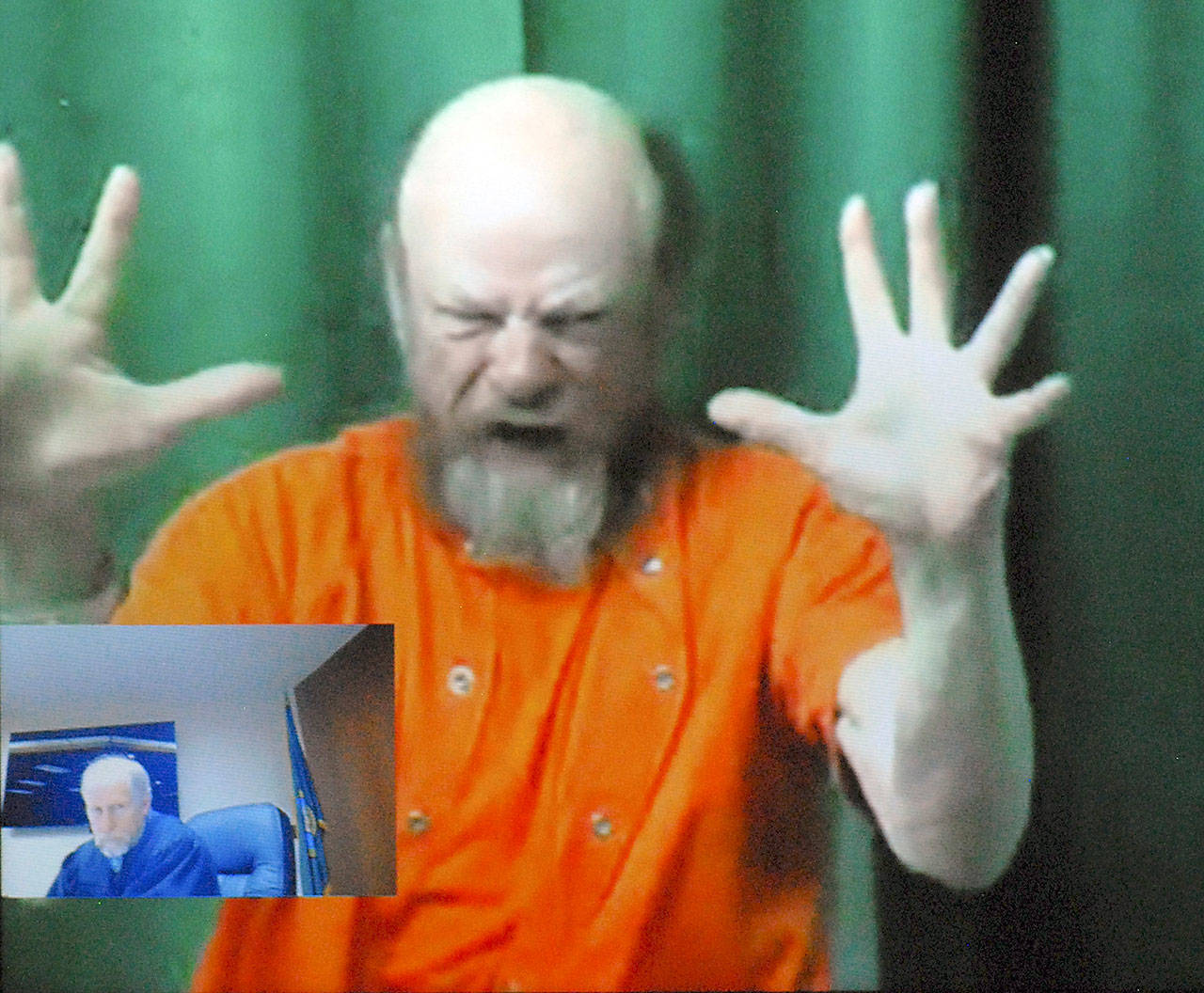 The courtroom hearing, conducted by video with Schilling in county jail, showed Schilling flailing his arms, growling and yelling “I’m a spirit,” “you’ll be damned,” and “you’re in the fires of hell right now, have fun.” For much of the time, the volume was turned to mute.