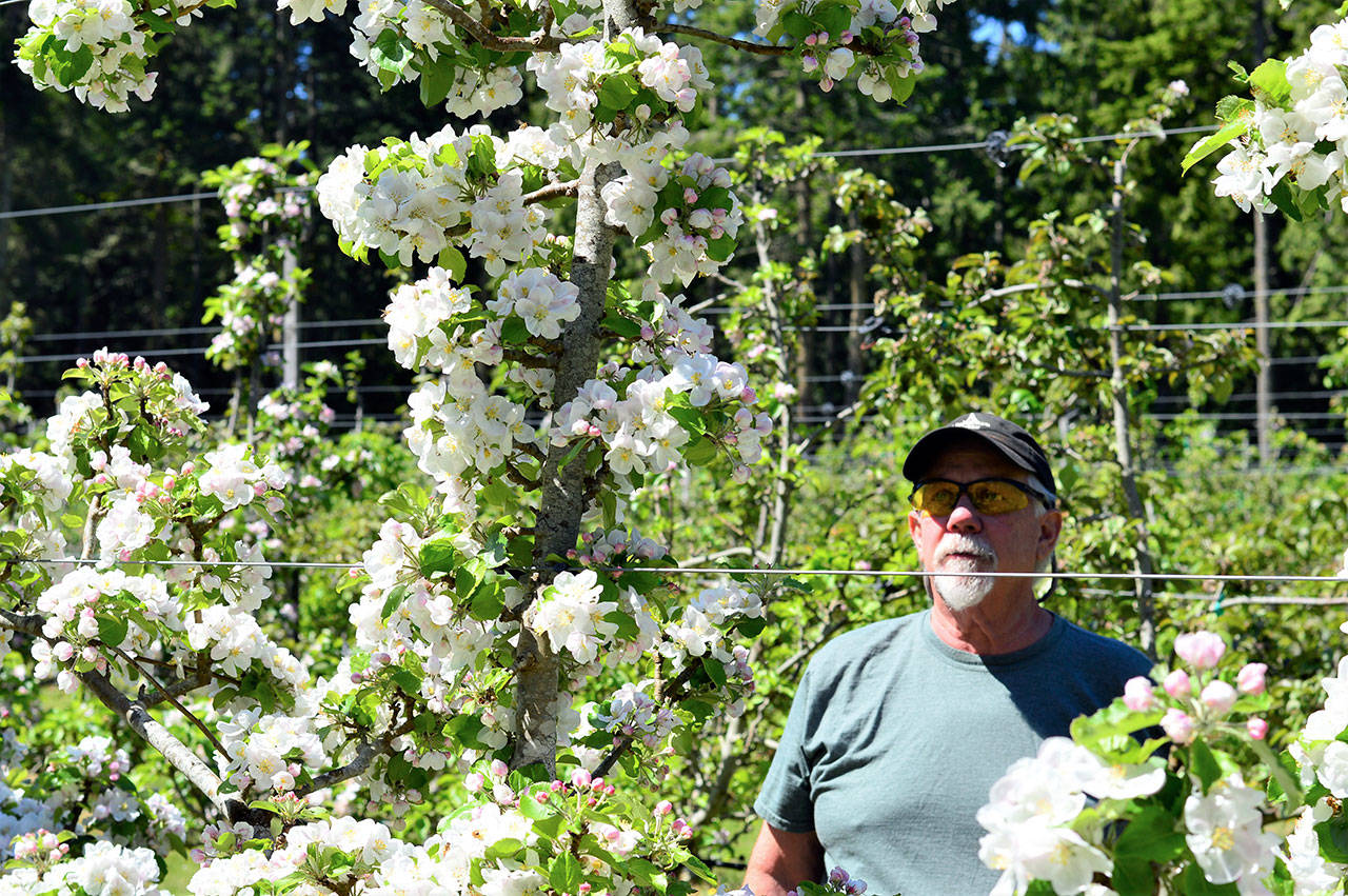 And when Nancy, his wife of 43 years, joined him for a walk among the trees Wednesday morning, she couldn’t resist doing two things: adjusting the cables which train the branches upward and taking a deep breath of the blossoms’ fragrance.