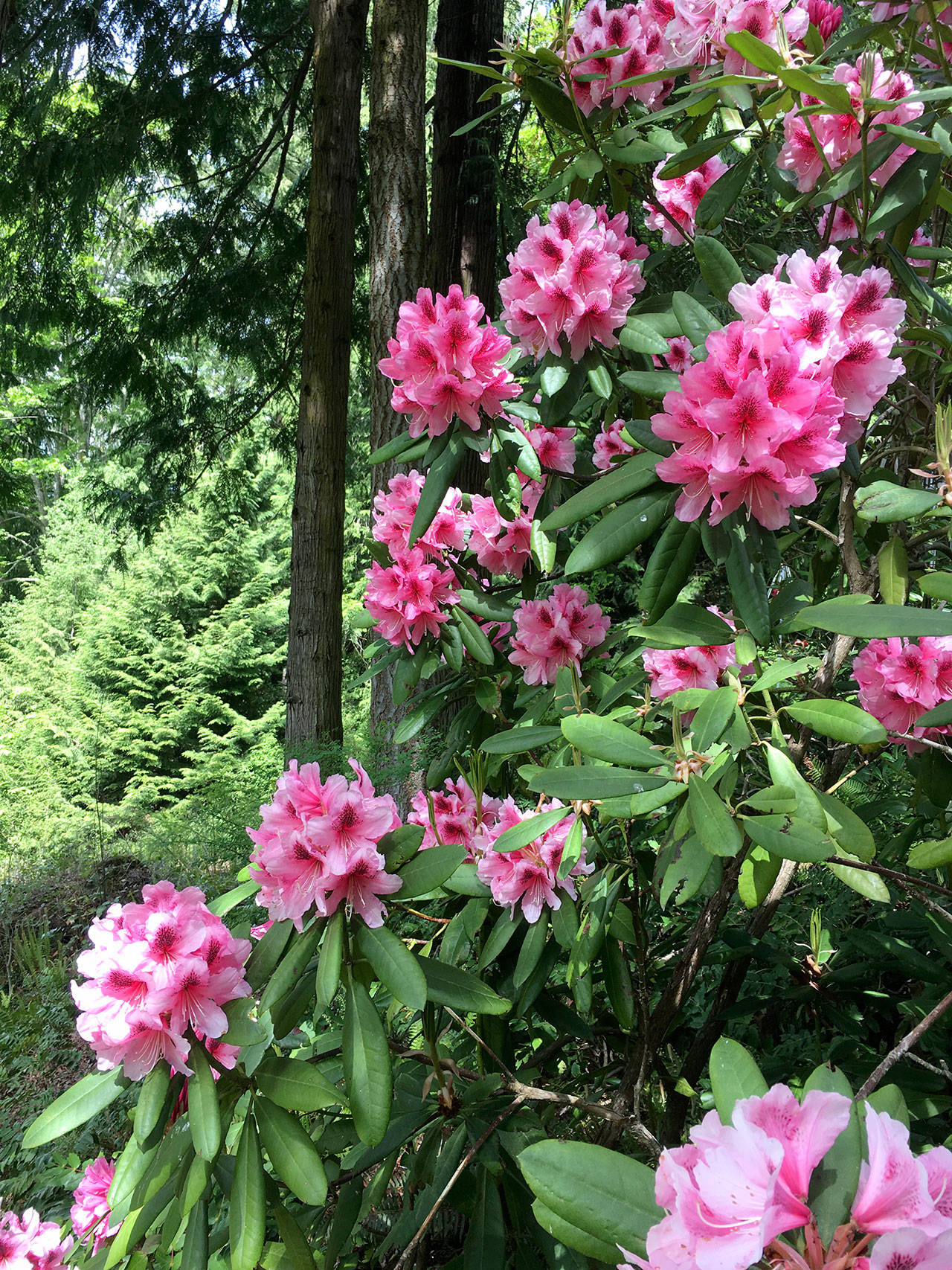 Many native plants can be found here — Pacific madrone, Indian plum, mountain ash, Oregon grape along with oakleaf hydrangea, rugosa rose, firs, cedars, and snowberries.