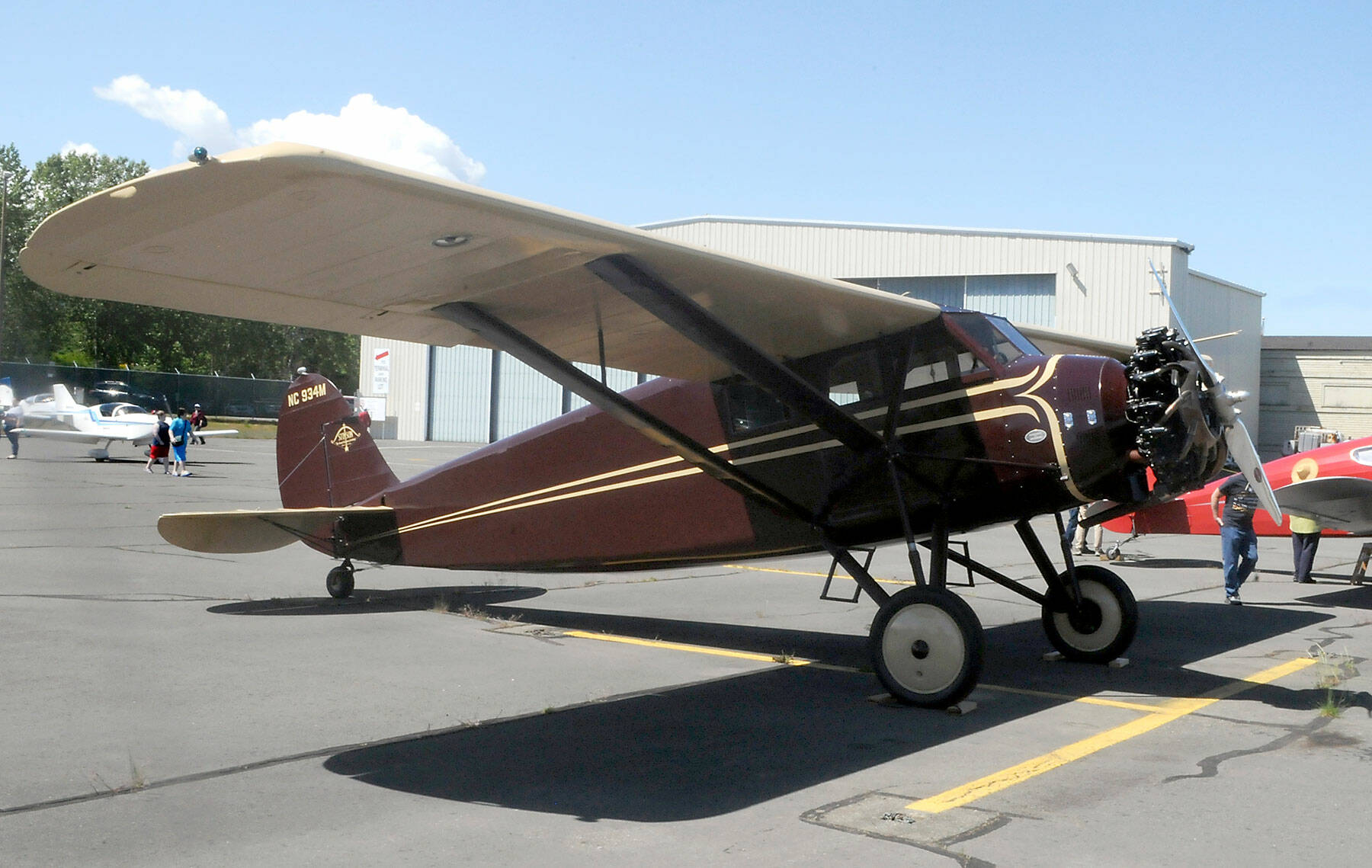 A Stinson SM-8A Detroiter belonging to Port Townsend Aero Museum sits on display at Armed Forces & Public Safety Airport Appreciation Day and Fly-in on Saturday at William R. Fairchild International Airport in Port Angeles. (Keith Thorpe/Peninsula Daily News)