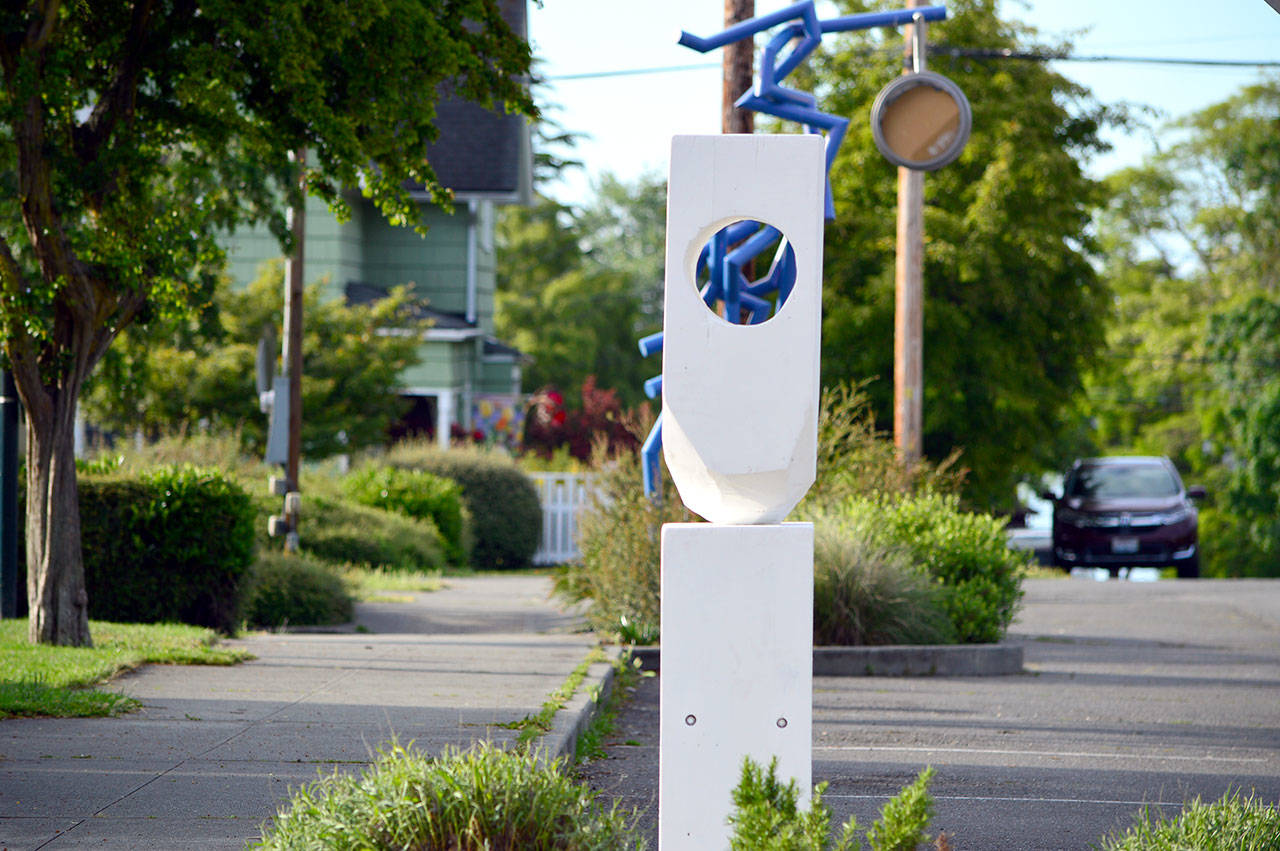 The reclaimed wood sculptures can be found outside the Port Townsend Library’s Charles Pink House at Harrison and Lawrence streets, at the Fort Worden State Park main gate, on Tyler Plaza downtown, at Washington and Monroe streets, and at Tyler and Lawrence streets Uptown.