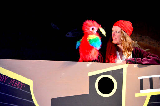 The competitors include Wolf, a celebrity chef (Paul Kiernan) and Sam, his child, a pair who don’t necessarily see eye to eye. Three young actors share the role of Sam: Eleanor Curtis, Argus McEnerney and Caleb Sigmund each do about a half-dozen performances. A pirate named Patty (Kirsten Louise Webb) also comes into the picture; she’s “a wooden boat sort of person,” Natale quipped, and she has a scarlet parrot for a companion.
