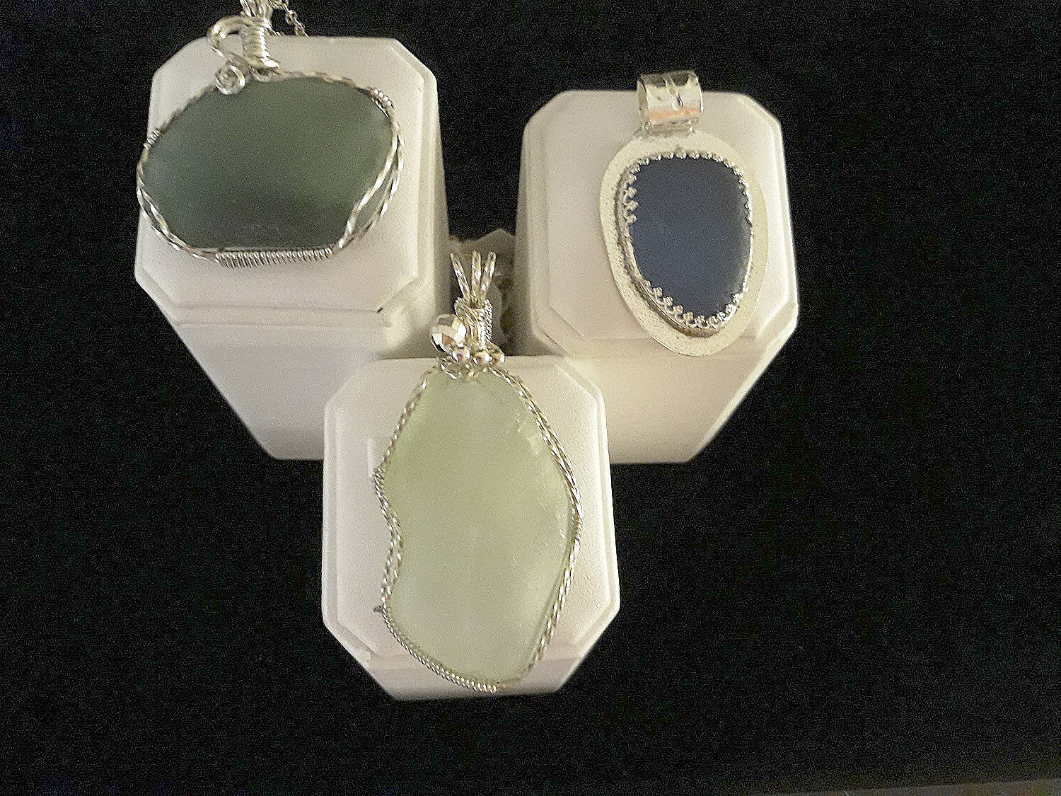 The trio use fine silver, sterling silver and copper in pieces incorporating semi-precious gemstones, lamp-working custom-made beads and sea glass.