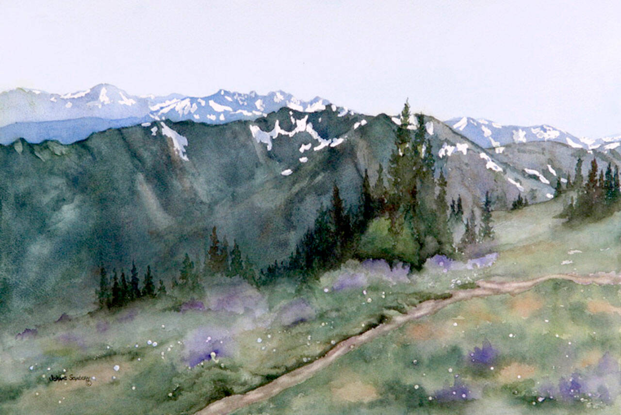 “Oh Beautiful for Spacious Skies” features the colorful work of Jolene Sanborn and Julie Senf, both of whom celebrate the North Olympic Peninsula.