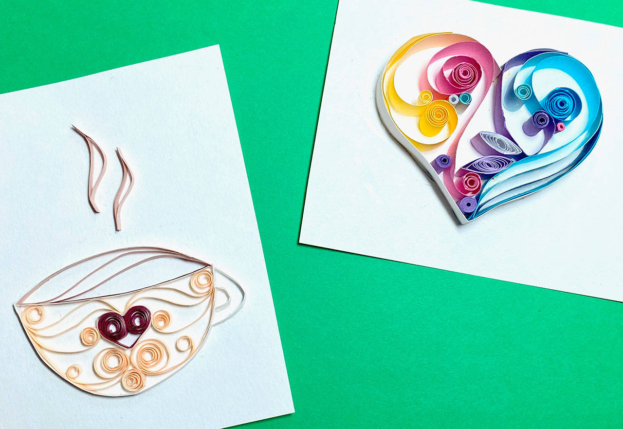 Paper quilled heart-themed projects have participants filling a heart with colorful, paper-quilled shapes. Kits will be available to pick up for registered participants beginning Monday, Jan. 25.