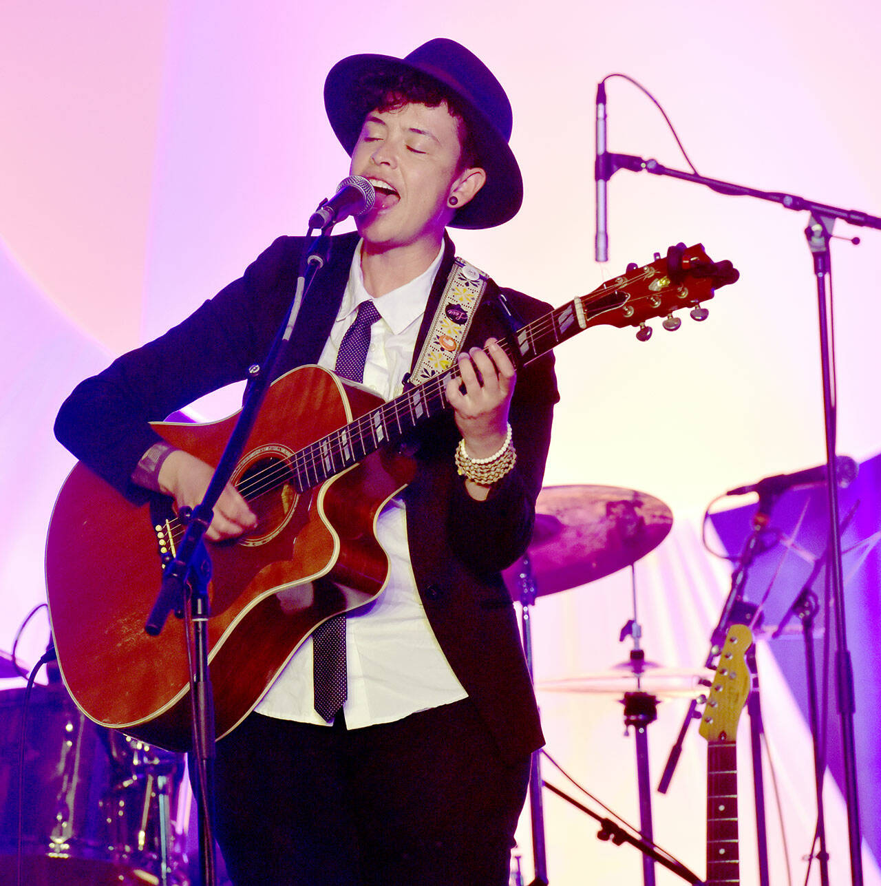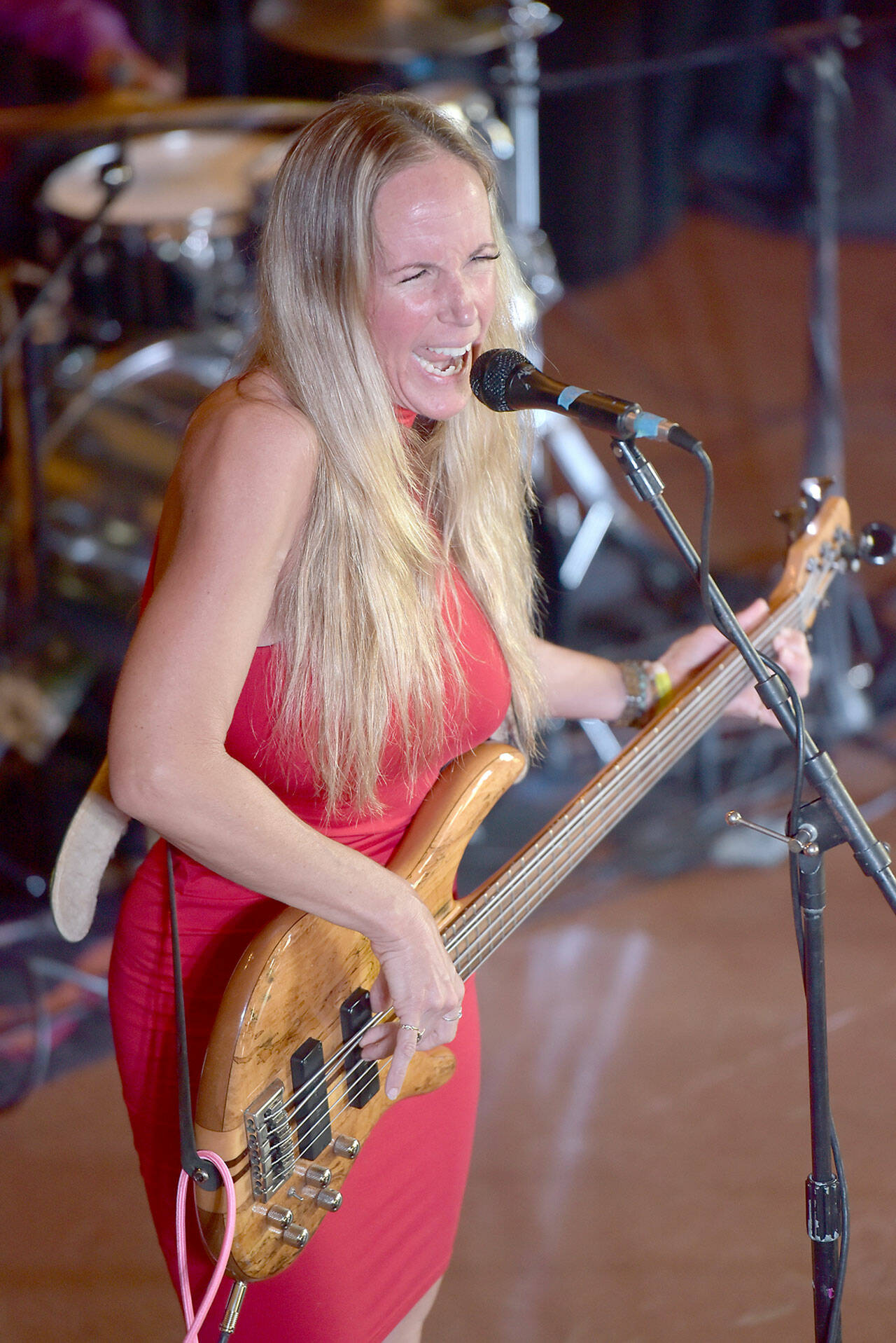 Blues bassist Anni Piper, Australia-born but based in Portland, Ore., takes the stage at the Naval Elks Club in Port Angeles, one of Saturday’s venues of the Juan de Fuca Festival. (Keith Thorpe/Peninsula Daily News)