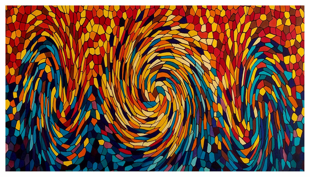 The exhibit is composed of 16 pieces by 12 artists that create visual movement in their work by depicting motion, leading observers from one section to another or making the artwork itself move.