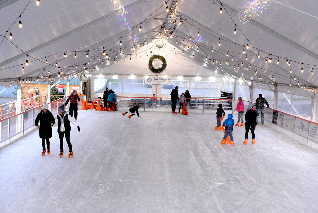 The Juan de Fuca Foundation for the Arts will do a “takeover” of the ice-skating rink starting at 3 p.m. to pour those free cups of cocoa for skaters and spectators, said Kyle LeMaire, the foundation’s executive director.