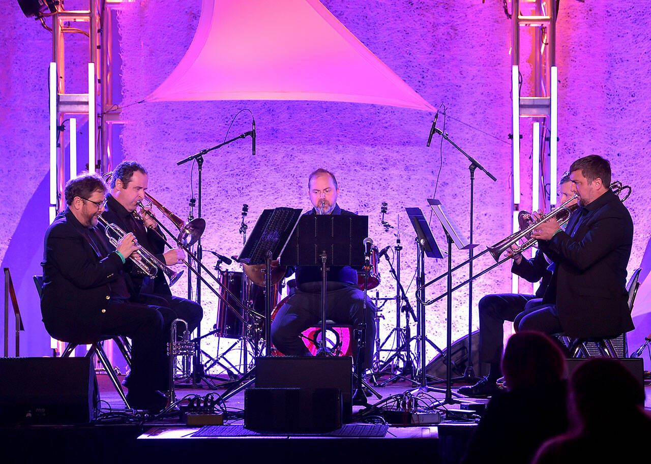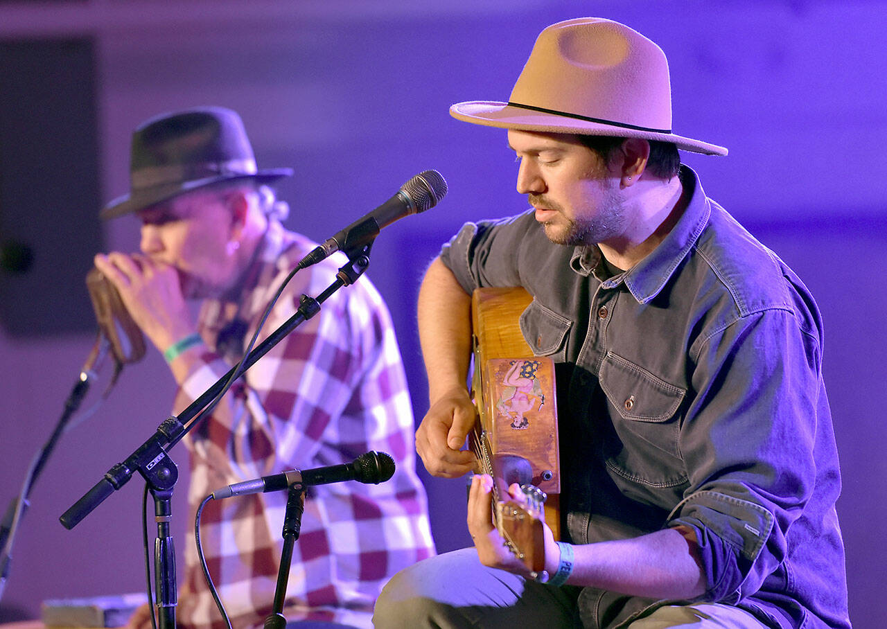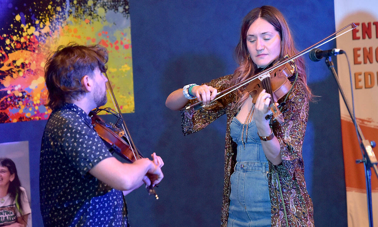 Rebecca Roudman, right, and Colin Williams of the San Francisco Bay area-based Renegade Orchestra take the stage at Field Arts & Events Hall, a Saturday venue of the Juan de Fuca Festival of the Arts.