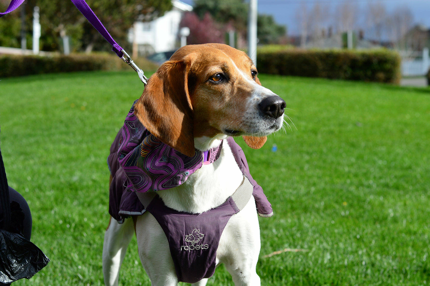 People have been generous, donating a range of pet supplies and furnishings — even a quilt, said Lois Davis, a Pet Helpers volunteer. On a recent afternoon outside the Port Townsend Community Center, her dog, Lady Bird, modeled one of the scarves that will be available at the yard sale.