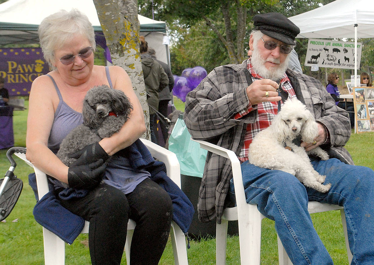 Sequim Police Detective Paul Dailidenas and canine officer Mamba give an agility demonstration at the Sequim dog park at Carrie Blake Park during the dog park’s 11th anniversary celebration Saturday. The event, hosted by Sequim Dog Park Pals and held in conjunction with KSQM Radio’s Pet Appreciation Day, featured a variety of vendors, demonstrations and a prize raffle.