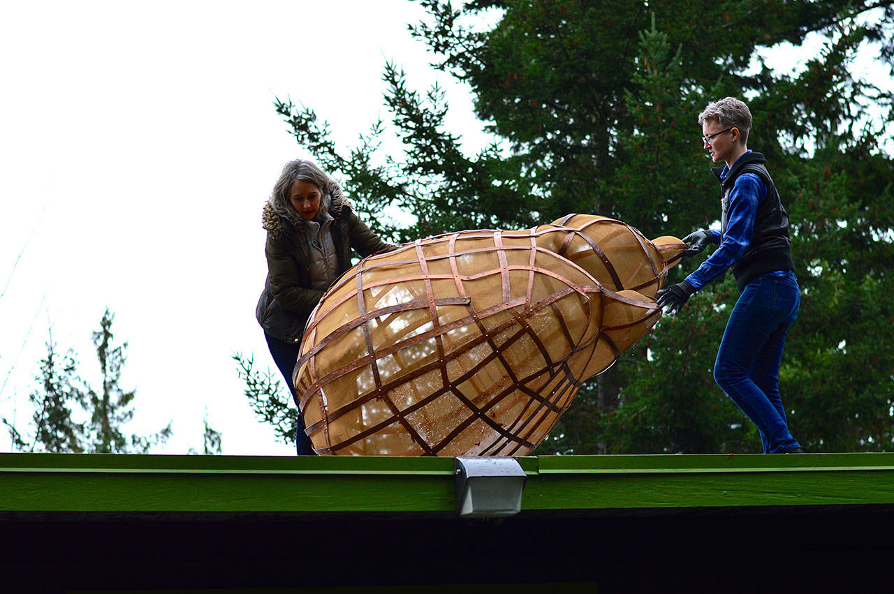 PORT ANGELES — It began as a slow burn, then sped up this week: Irish-American artist Katherine Shaughnessy of Boise, after visiting the Statue of Liberty and Ellis Island, envisioned a lighted flame sculpture. She built it, put it in her pickup truck and drove it to the Port Angeles Fine Arts Center, where city workers lifted it onto the roof.