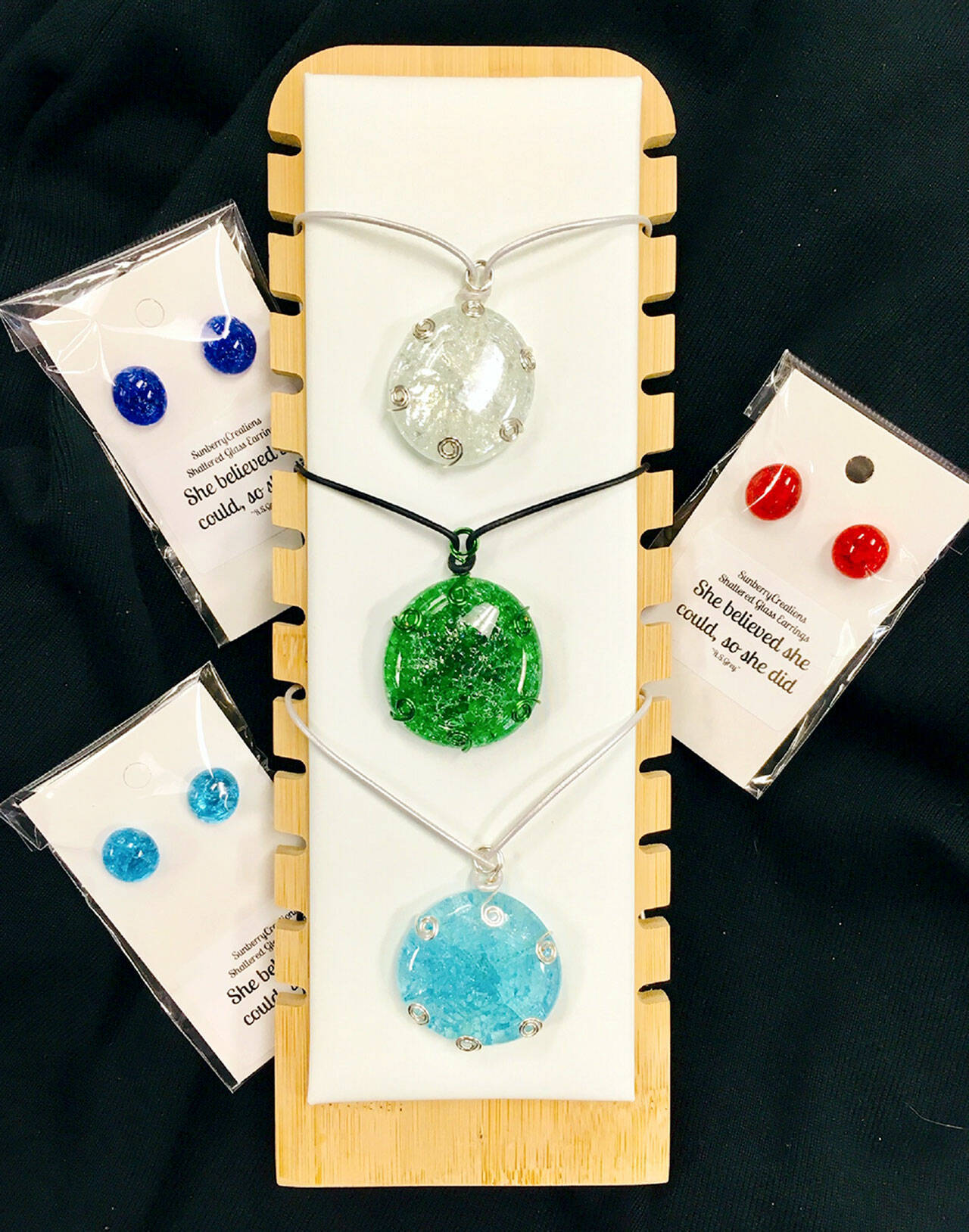 Shattered Glass’ pendant necklaces and earrings in a variety of colors “serve as a statement and acknowledgement of achievement for all women,” according to a press release.During April, the work of both can be seen at Sound Community Bank at the corner of Oak Bay Road and Osprey Ridge Drive in Port Ludlow and online at www.portludlowart.org.