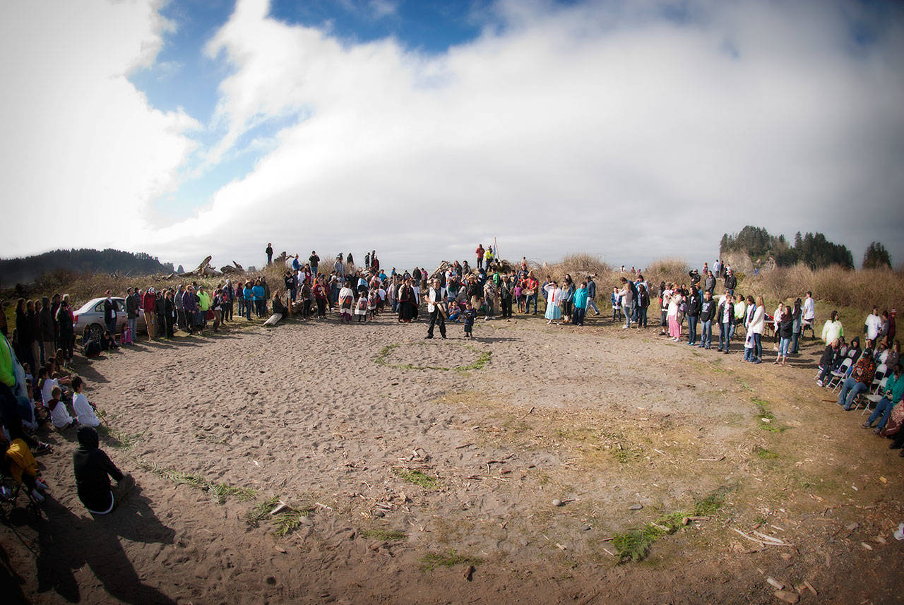 The annual ceremony marks the migration of the gray whales as they pass by La Push. At some ceremonies, gray whales can be seen out in the Pacific.