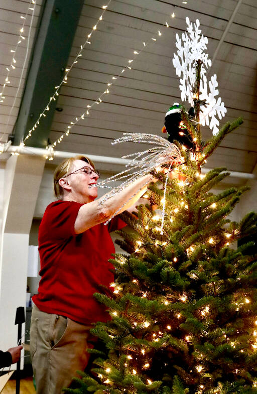 Sue Chance, left, and Betsy Schultz decorate their tree called, “Draped With Honor, Respect and Remembrance” for the 33rd annual Festival of Trees this coming weekend.
