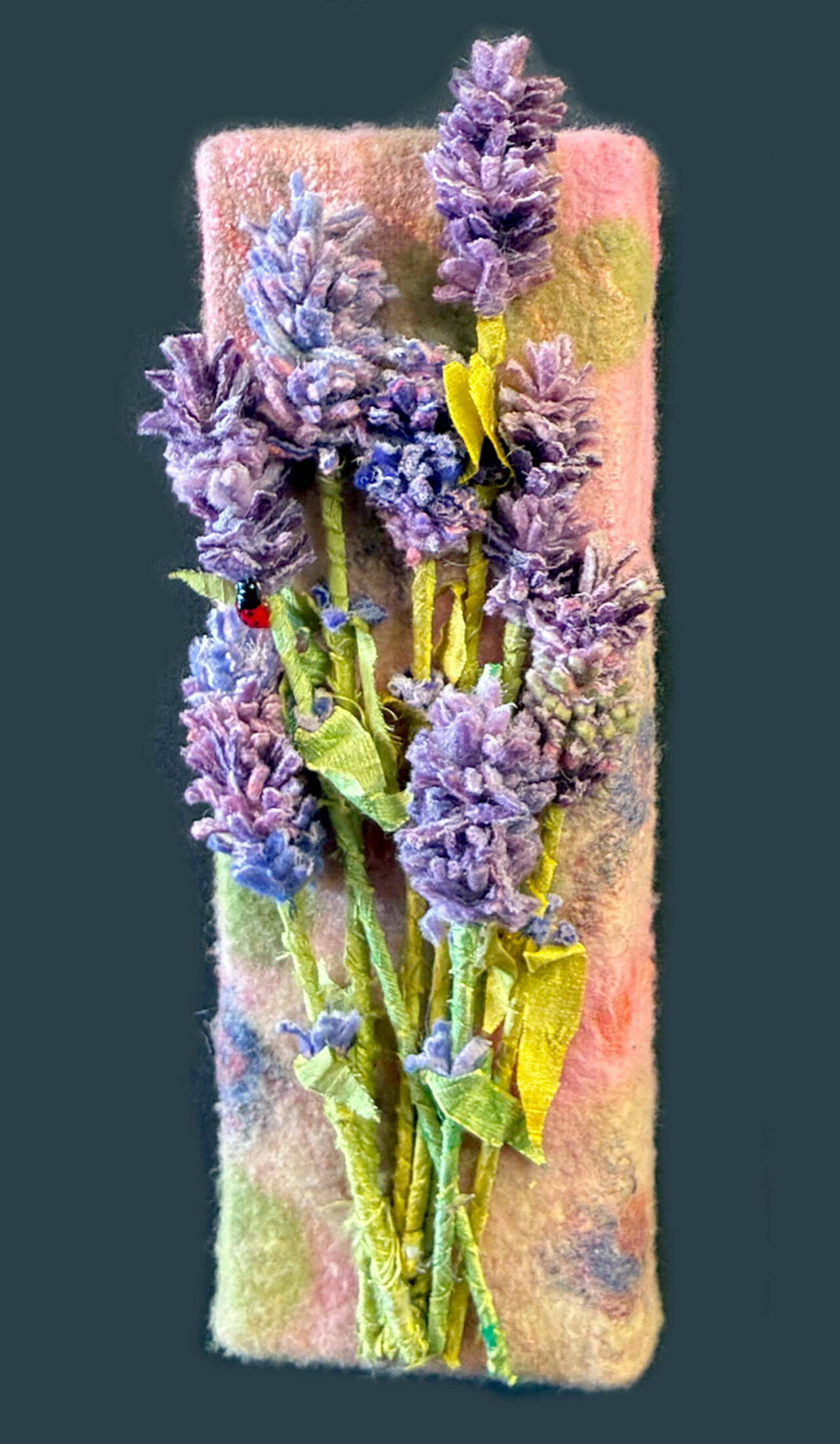 “I love working with the greens, blues and golds that remind me of home,” Armstrong said. “So many of my pieces begin with a walk — seeing a fern or a petal or a rock that sparks an idea. Felting lets me translate those moments into color and texture.”