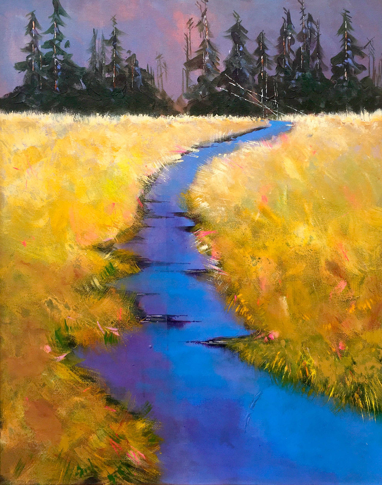 Morris enjoys painting en plein air and plays with color, using acrylics.