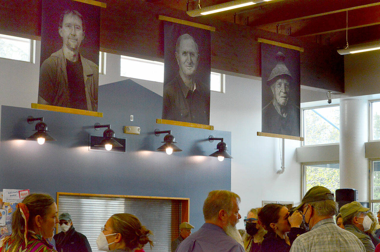 During the opening celebration, the Chemakum people in the portraits mingled with other people from across and beyond Jefferson County — farmers, staffers from the historical society, Chimacum School District officials and the photographers behind the exhibit and book, including Kerry Tremain and Brian Goodman.