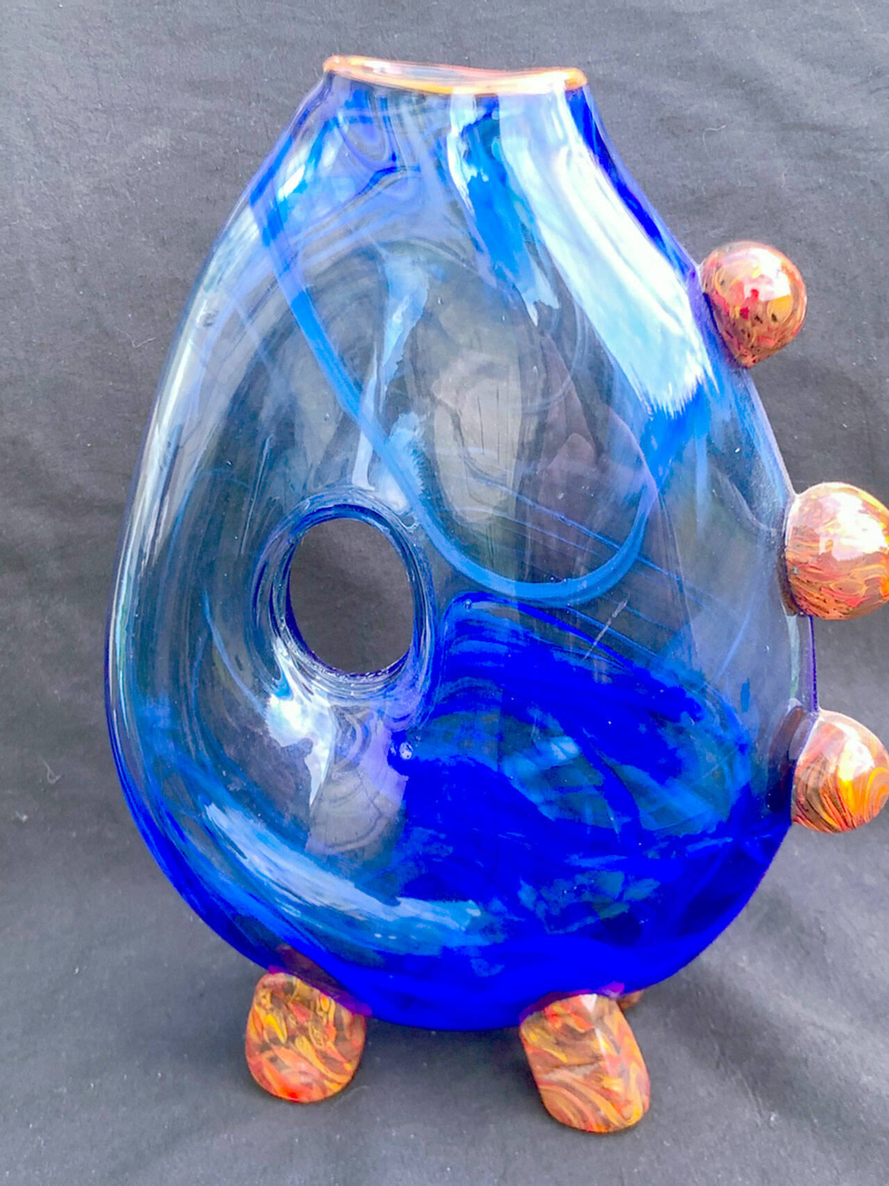 Iverson, a lifelong Washington resident, works as a glass artist in Jefferson County. Lately, he has been focusing on illustrating themes of rebirth and bright, energizing colors. His work includes a variety of large, fluted bowls, colorful paperweights and gazing balls as well as lampworked sculpture.