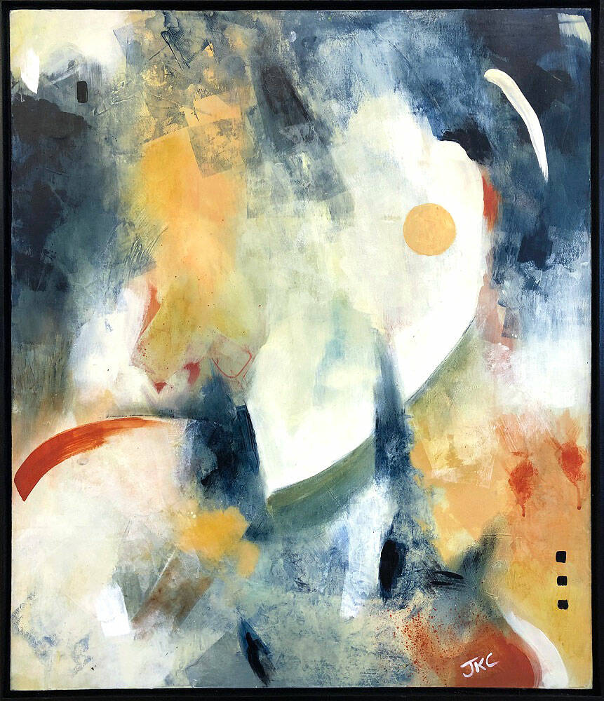 “With the representational work, I would start from an idea and perhaps from photographs, and interpret that in the piece,” she said. “With the abstract work — acrylic and mixed media on wood panels — I start from an empty place and follow the images as they build. It requires being comfortable with the unknown and trusting the process as it develops. And it also involves the back and forth between the freedom of play and the analysis of the design elements in the painting, to create a piece that shows both inspiration and structure.”