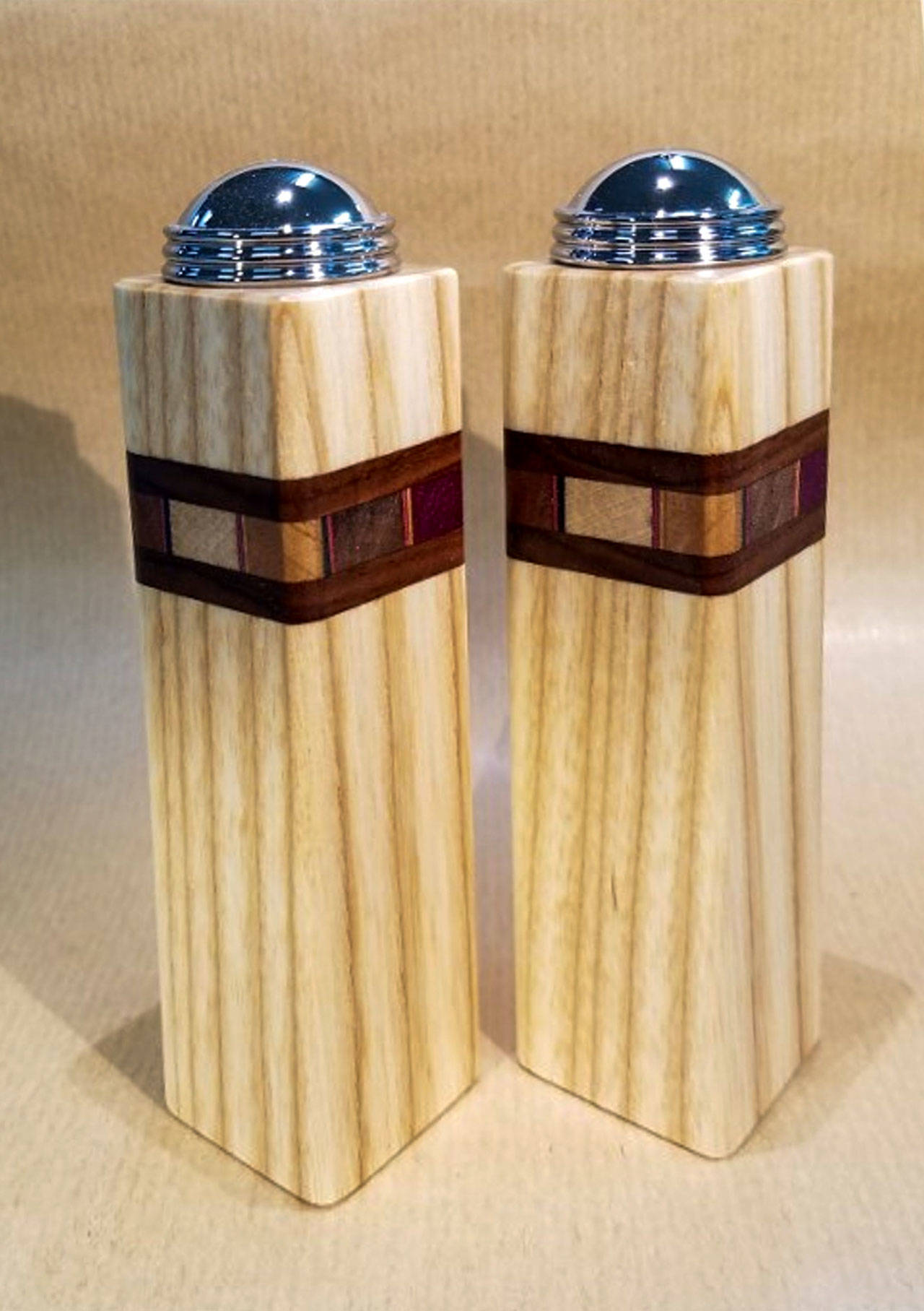 This month, she is presenting her new 2021 salt and pepper shaker sets. There are two styles: the 3 Stripe Series and the Bold Mosaic Series.