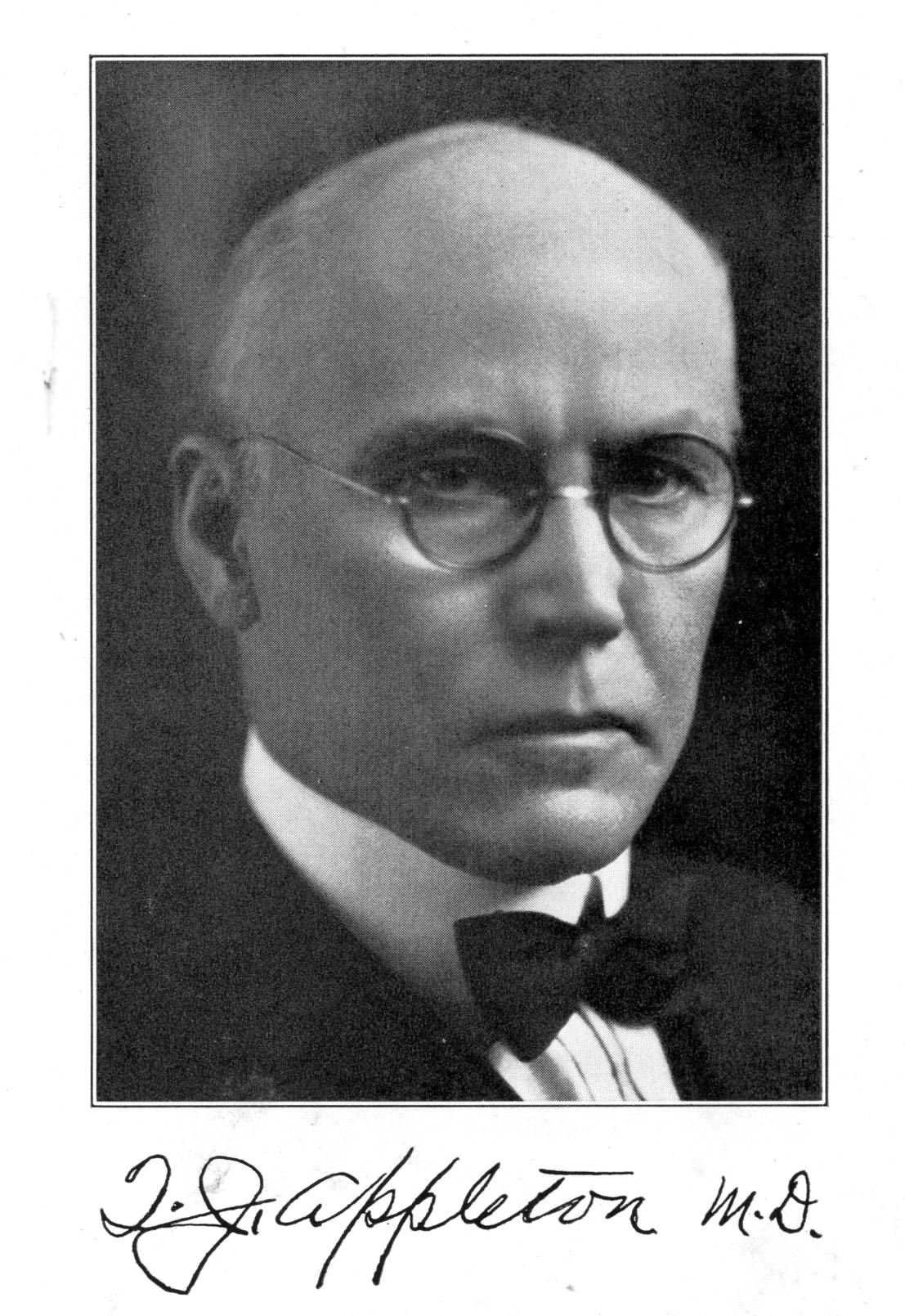 Besides being a conscientious physician, Appleton was an eloquent speaker and a published author. In 1930, he published a book titled, “The Basis of All Life and Subsidiary Articles.”