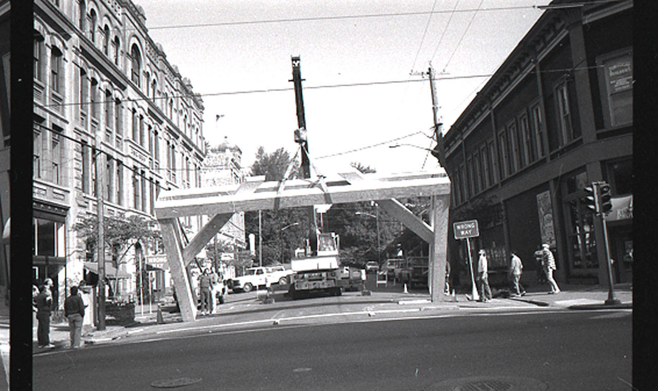 There was a replica of the archway at the intersection of Water and Taylor streets, attached at the same eye bolts that were placed 100 years earlier.