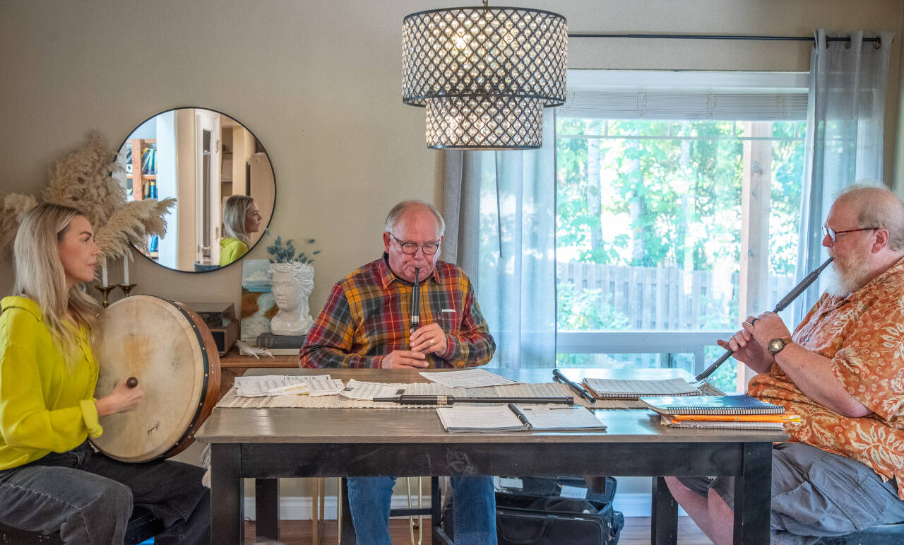 Evans often can be heard on Ediz Hook in Port Angeles on Tuesdays, sometimes with the others joining in.