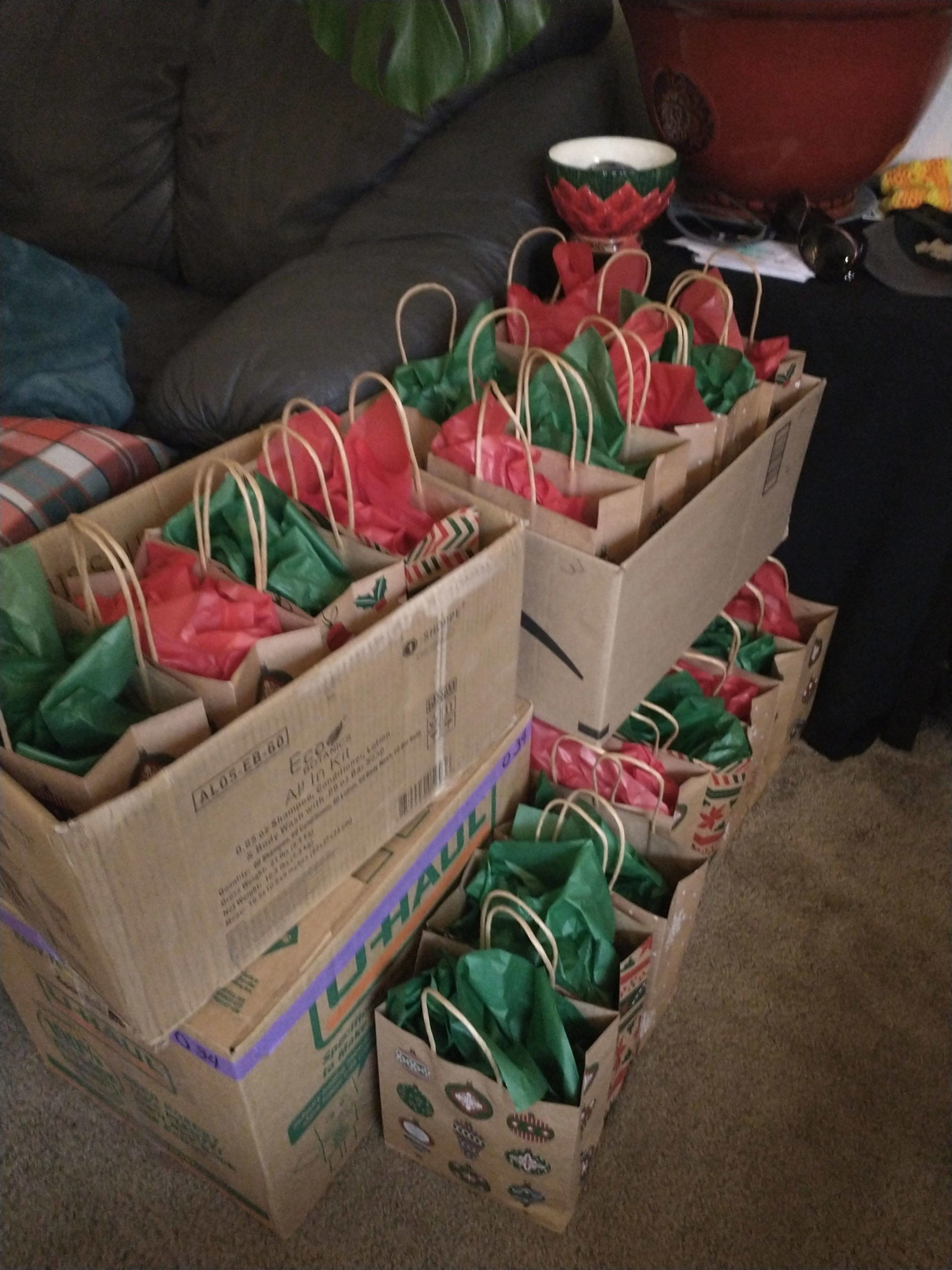 Unlike in years past, River wasn’t able to hand out the bags personally because of health concerns and restrictions.