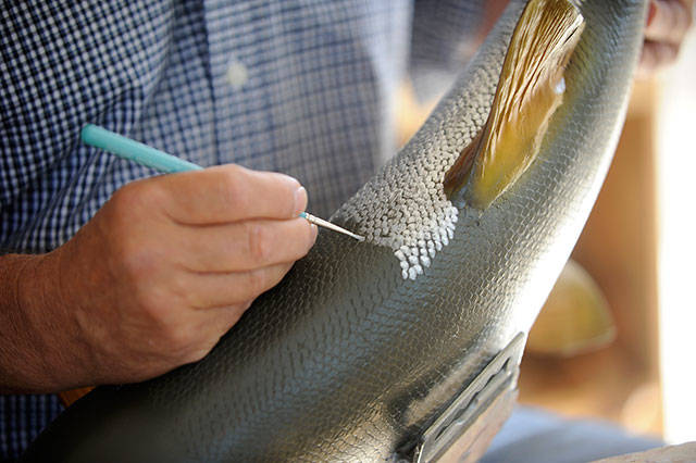 “Every scale I paint on a fish I do at least twice,” Filmer said, adding that it gives the piece a valuable depth and shimmer.