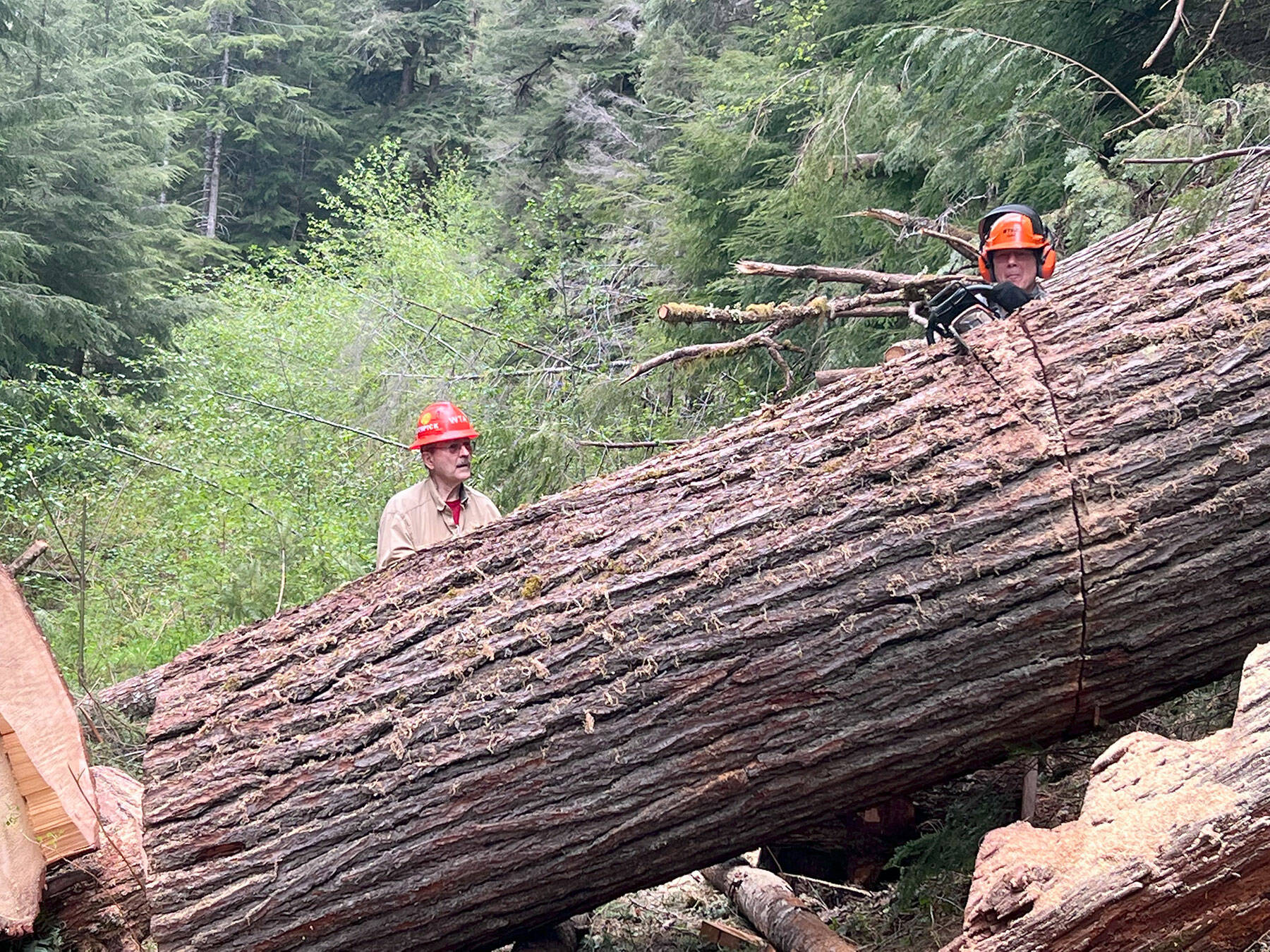 Wanagel organized a crew of WTA sawyers who, along with Hoyle and Lenke, headed up to tackle the mess on March 26. There, they happily discovered a contractor already at work on the road.