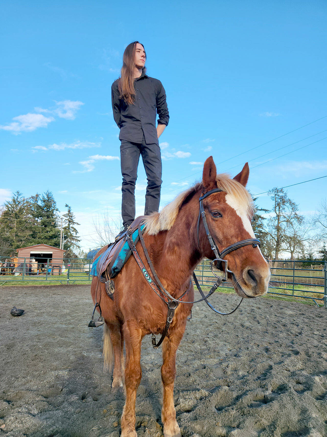 Casper, who goes to Sequim High School, is a baseball player and a natural athlete who has ridden “since a baby,” said his mom. She said he already has Rupert calmly accepting him vaulting over his back from one side to another, standing on his back and making other moves.