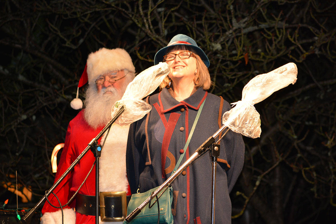 Once Mayor Deborah Stinson and Santa Claus gave the green light, the tree illuminated Haller Fountain, complete with a big star on top, eliciting applause.