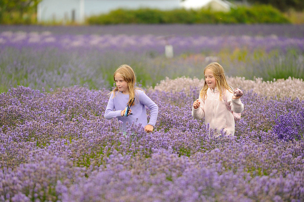 Twins Sophia (left) and Gianna Roberts of Olympia race through a field of lavender at the B&B Family Lavender Farm in Sequim. The annual Sequim Lavender Weekend was canceled because of COVID-19 concerns, but many area farms prepared for a special weekend on the traditional dates of the lavender celebration ending today