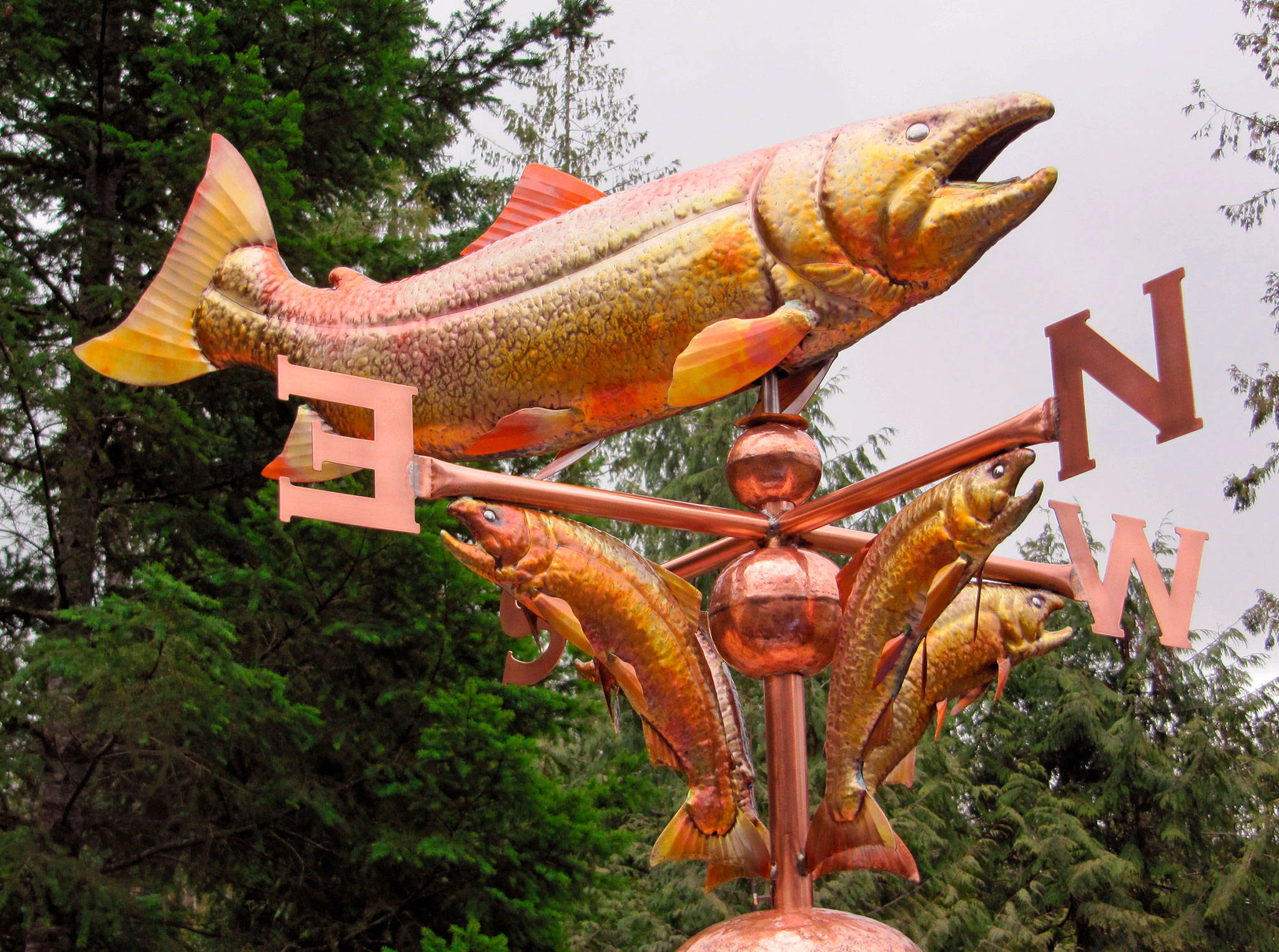 The self-taught copper sculptor specializes in portraying wild salmon and native marine life.