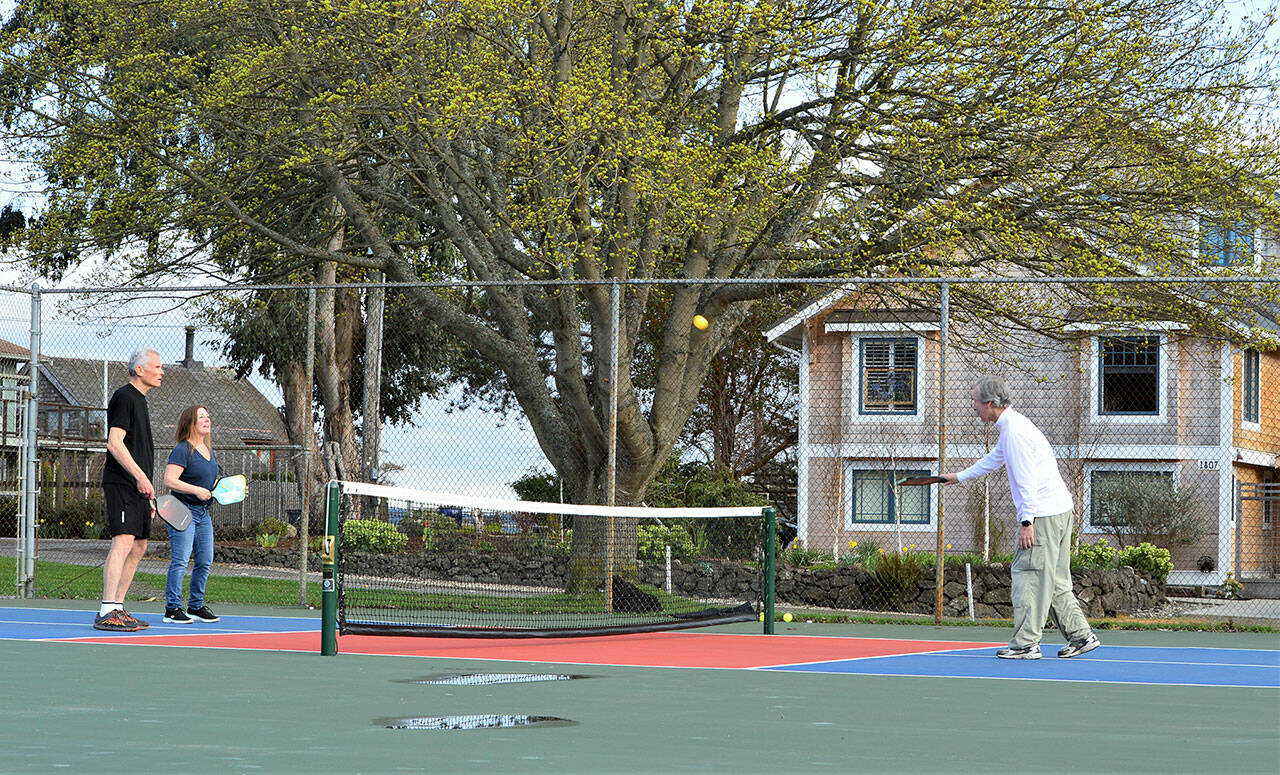 Pickleballs are already in the air around Port Townsend: outside the Jefferson County Courthouse, indoors at the Olympic Peninsula YMCA branch, on the tennis courts outside Port Townsend High School and on the Mountain View courts, which are concrete slabs with cracks.