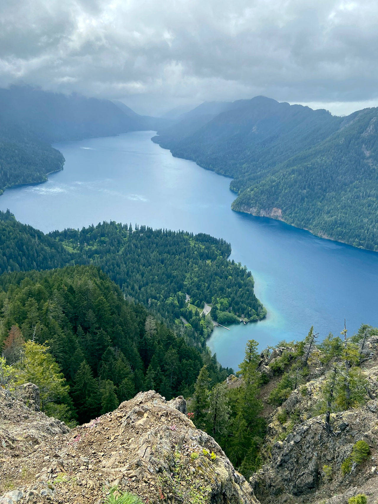 OLYMPIC NATIONAL PARK — A bird’s-eye view of Lake Crescent awaits on the craggy flanks of Mount Storm King.