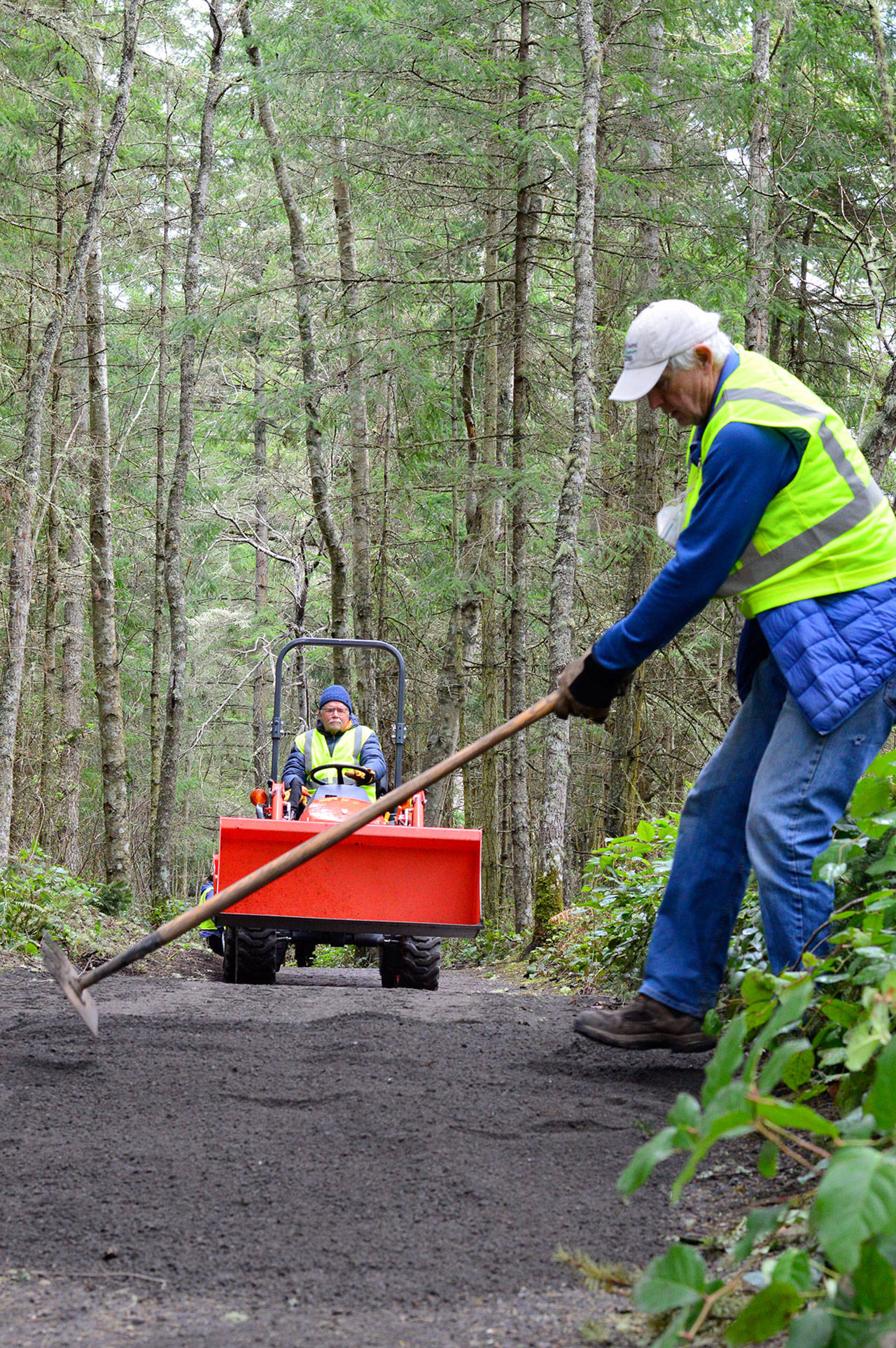 A rare motorized vehicle was sighted last weekend on the Olympic Discovery Trail. The bright orange Kubota tractor dumped dirt on the path through the woods off Discovery Road just outside Port Townsend.