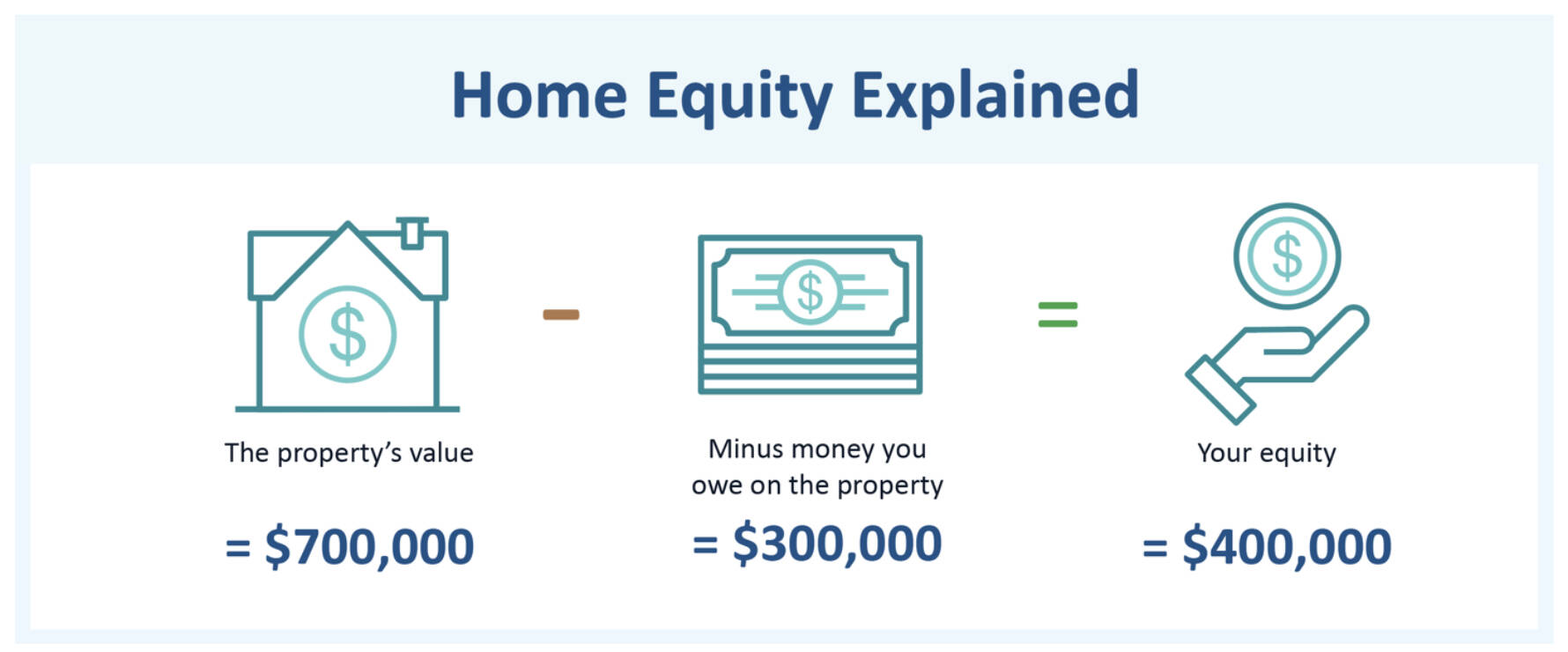 Example calculation: If your home is worth $700,000 and you owe $300,000 on your mortgage, your equity is $400,000.